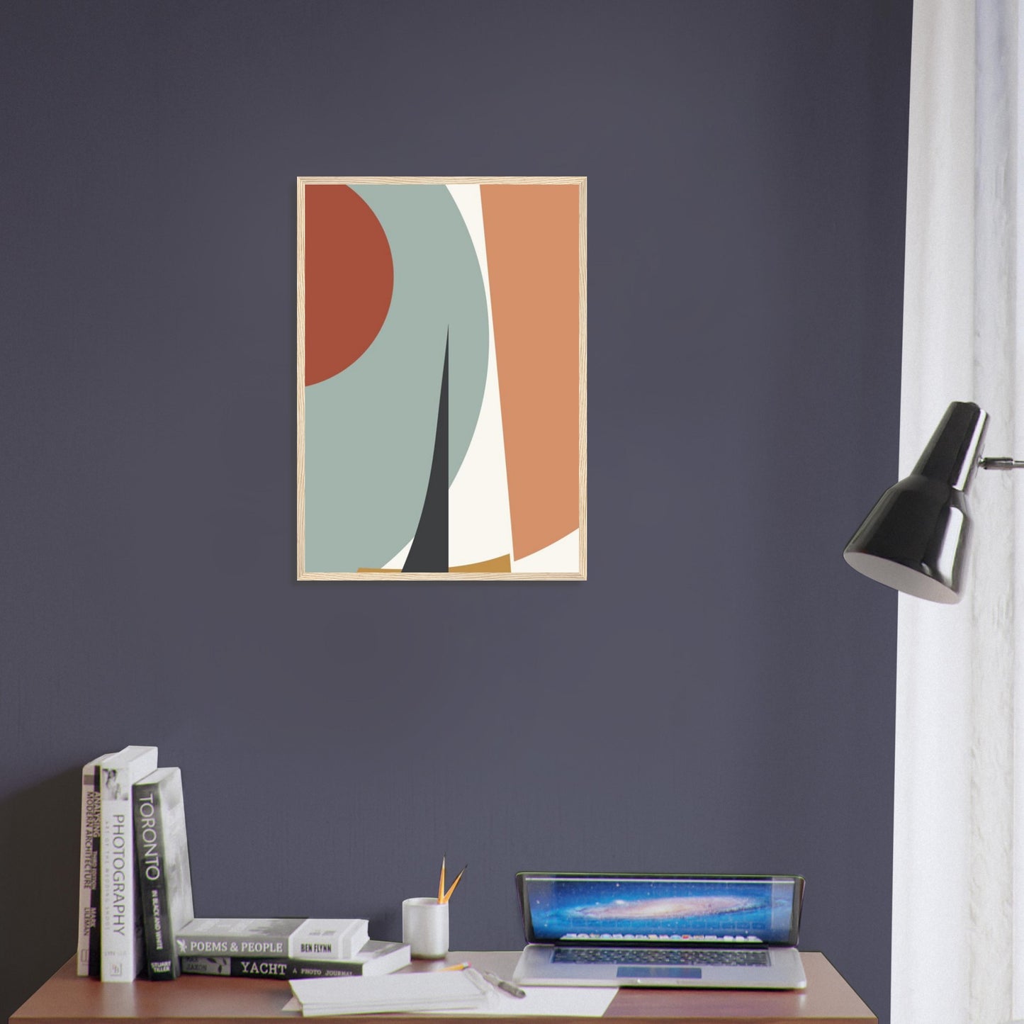 Modern Geometric Abstract Shapes Framed Poster Art in Earth Tones