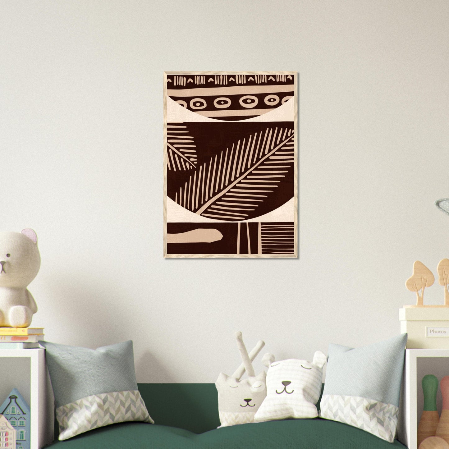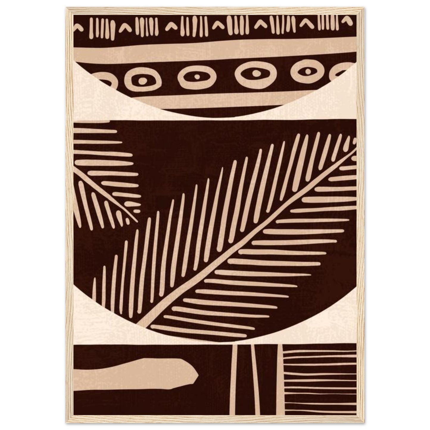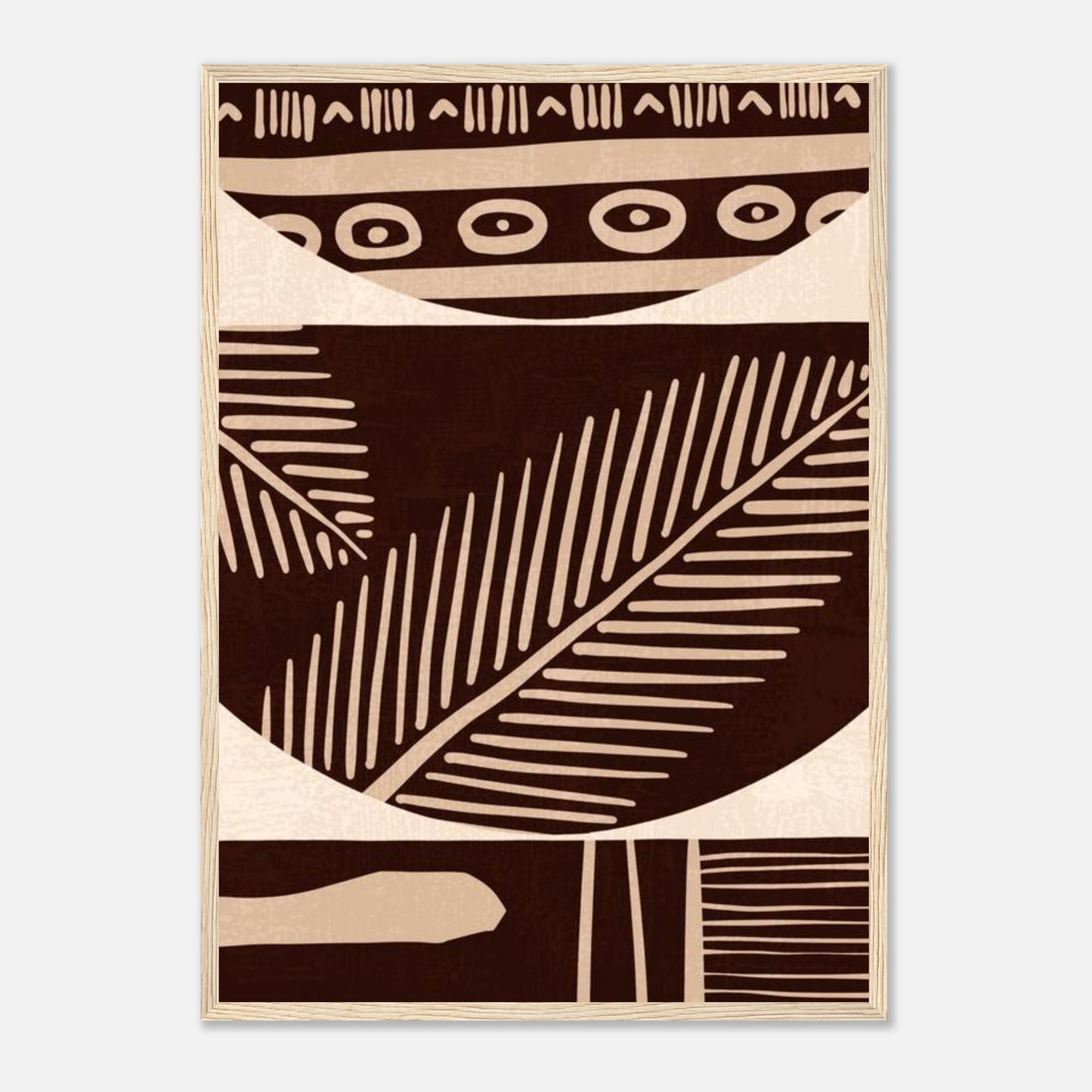 Bold geometric patterns in rich chocolate brown and cream create a striking modern tribal design. Three stacked semi-circles feature distinctive ethnic-inspired motifs including stripes, dots, and linear patterns. This minimalist artwork brings sophisticated bohemian style with its clean, contemporary interpretation of traditional designs