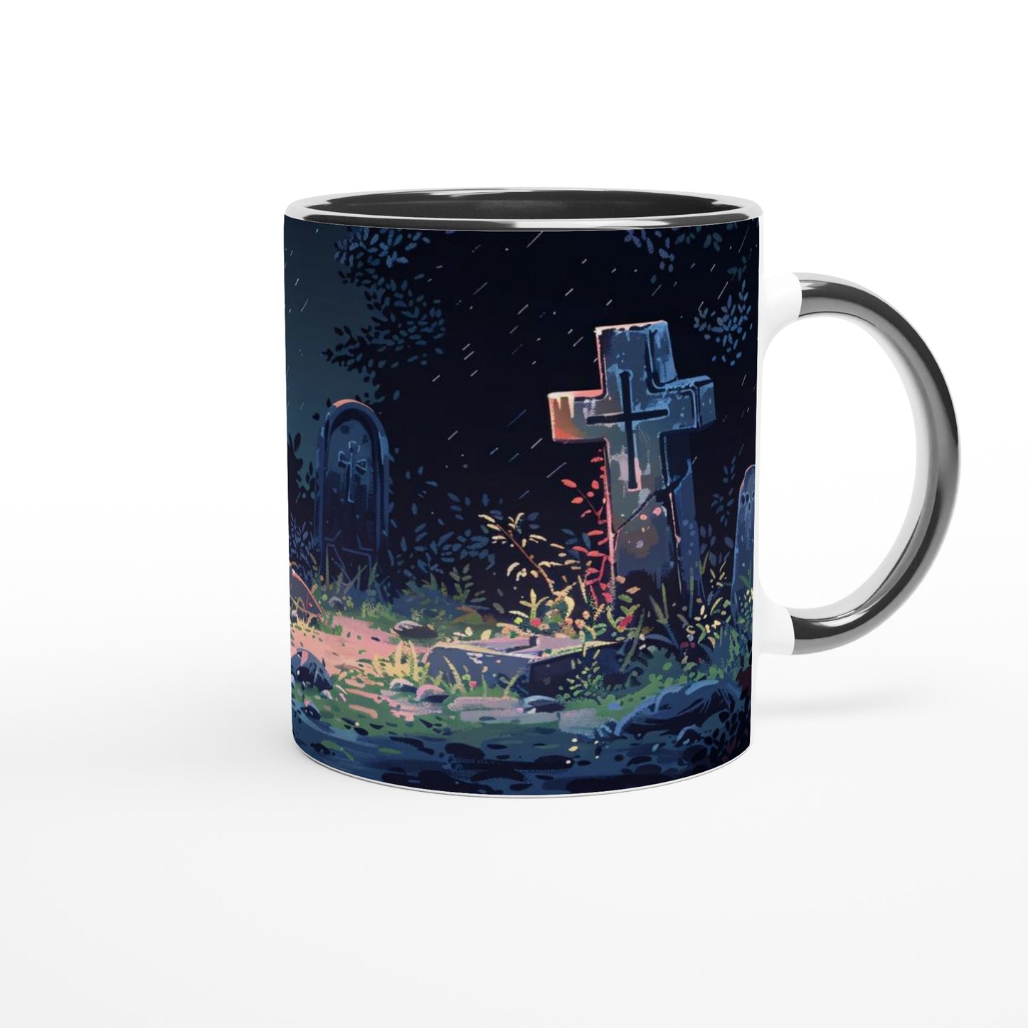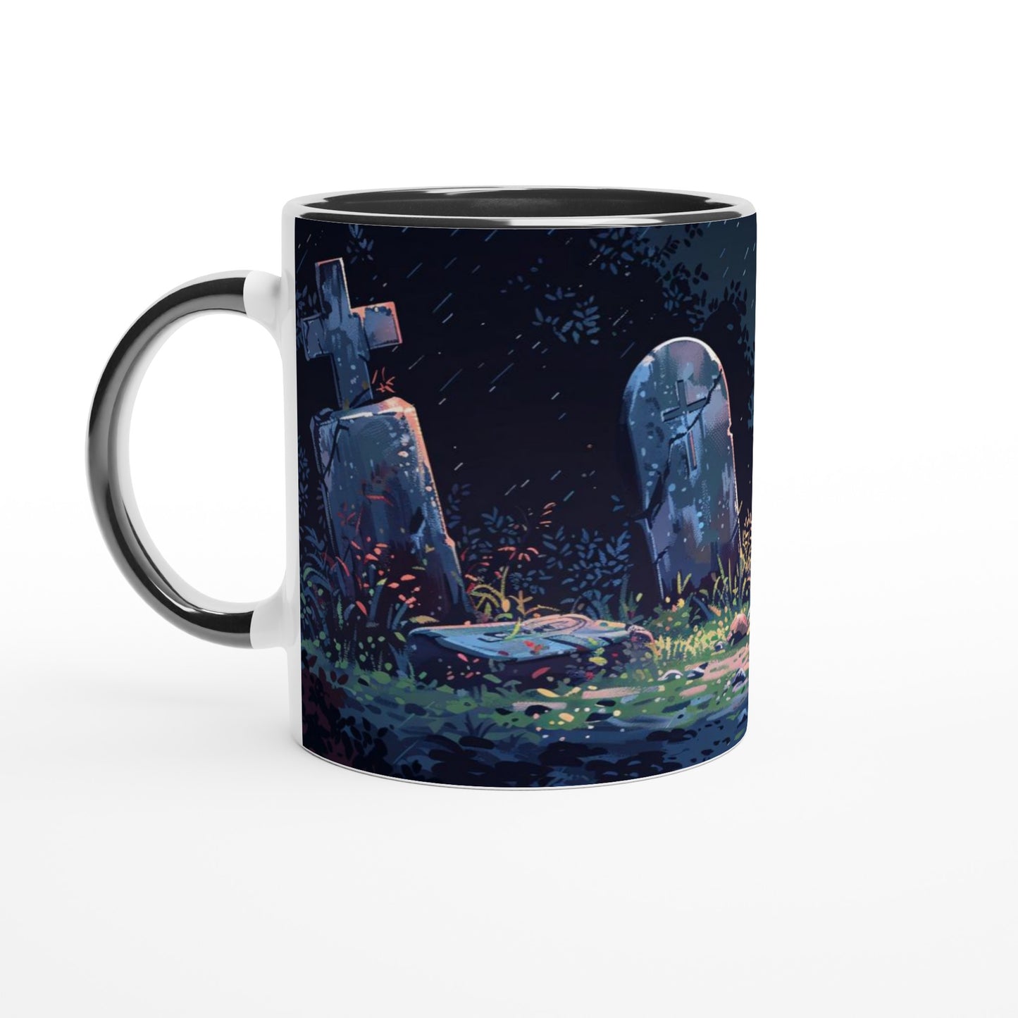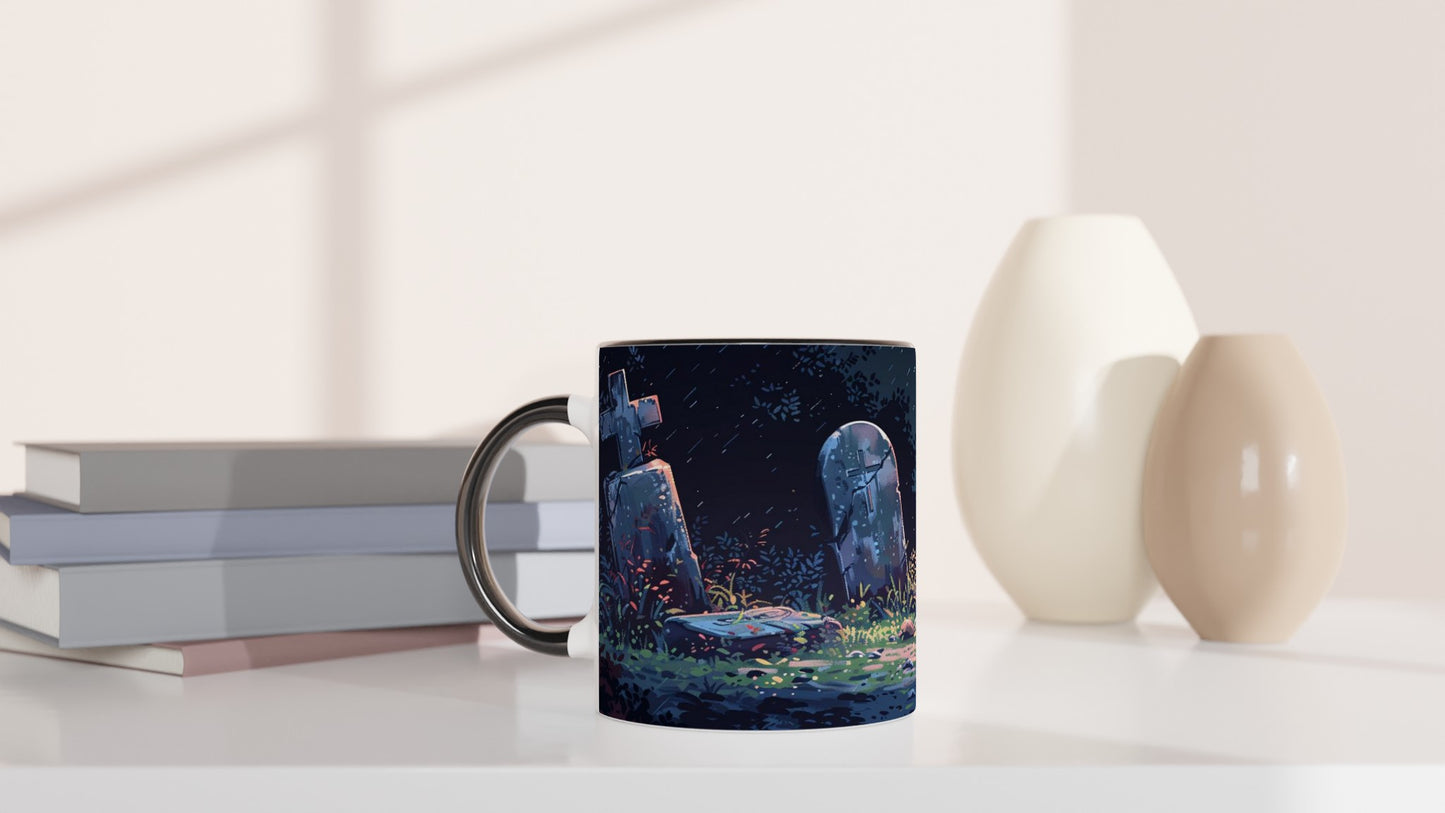 Moonlit Cemetery Gothic Art Mug - Haunting Graveyard Scene