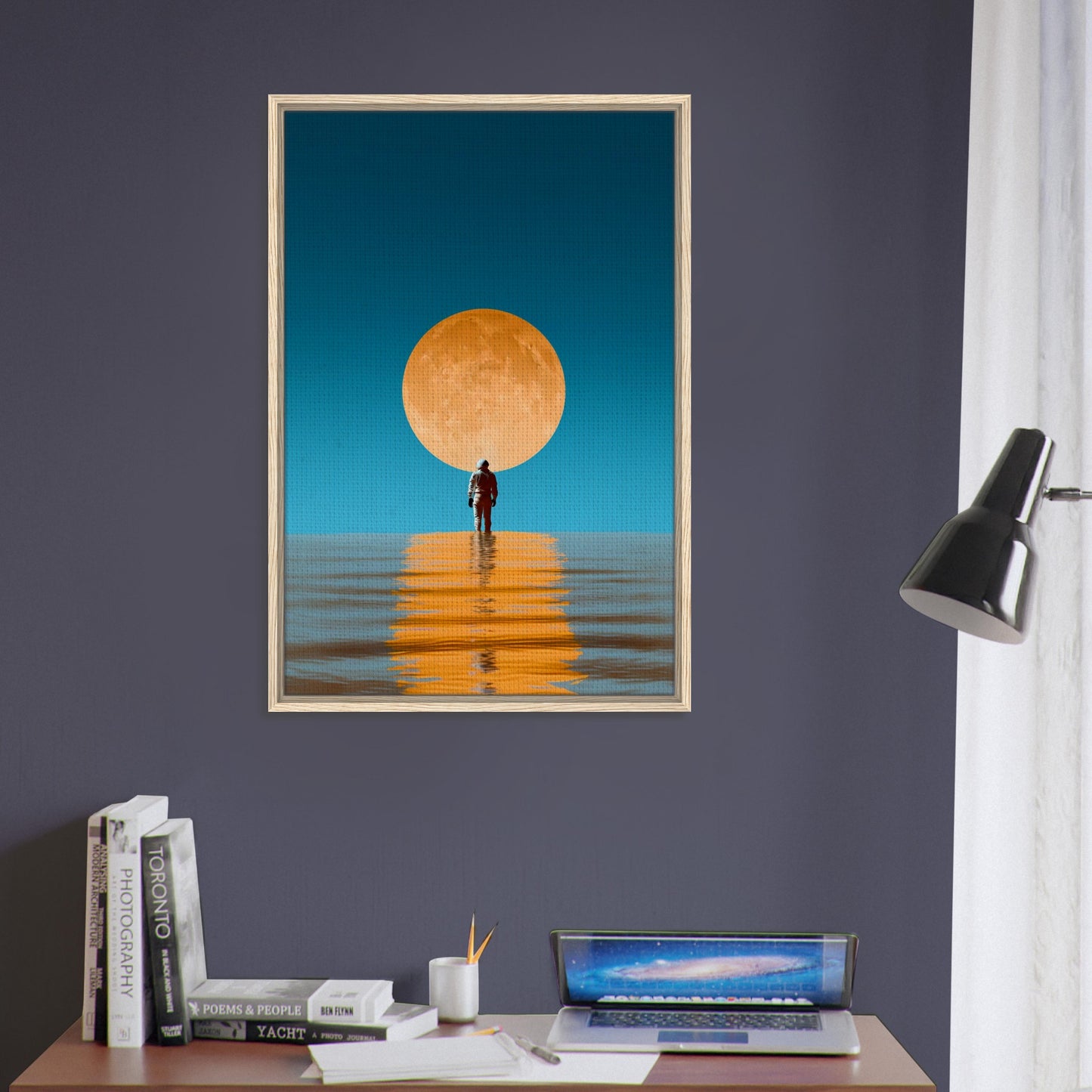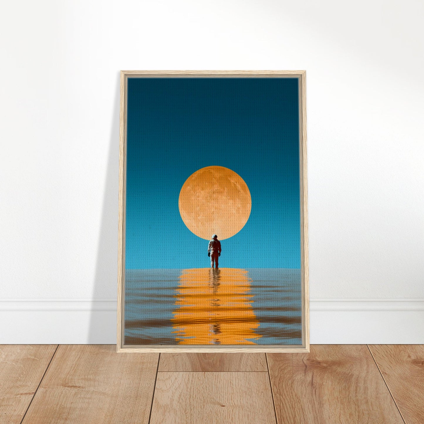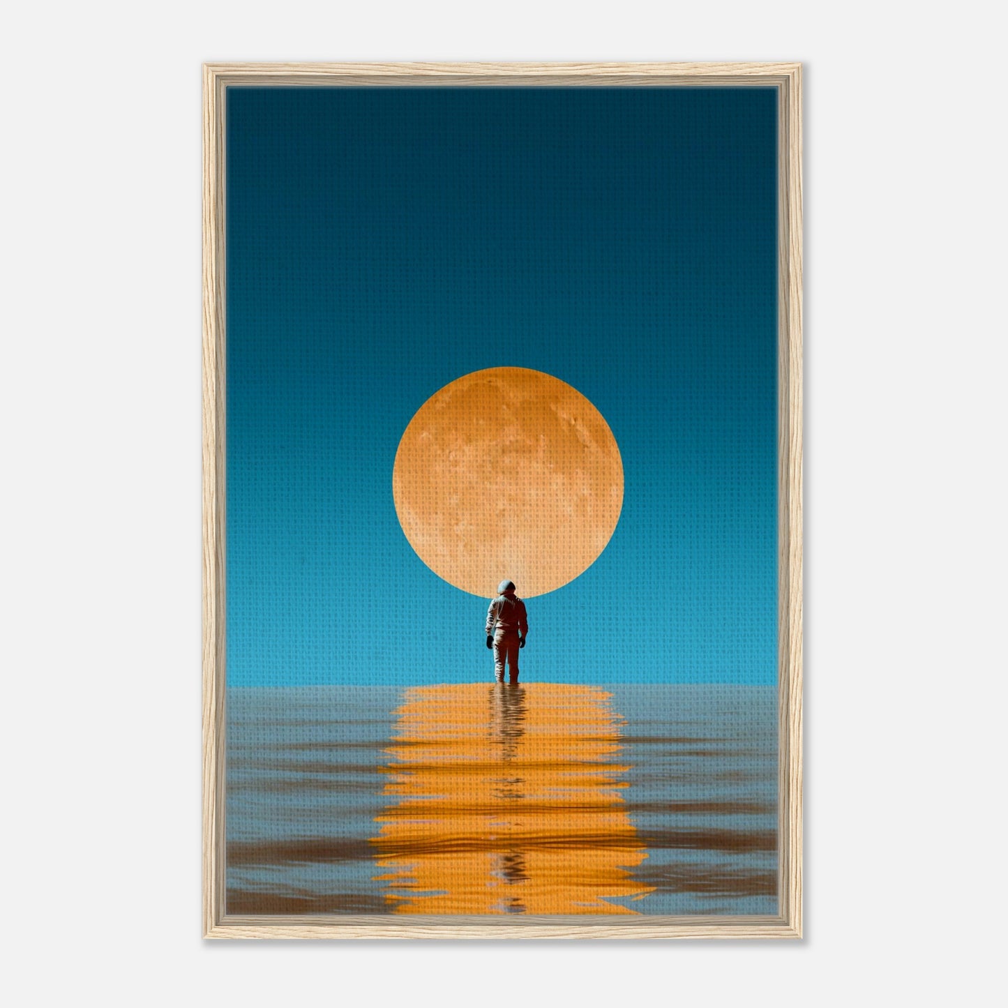Moonlit Solitude Framed Canvas Wall Art - Surreal Ocean Reflection