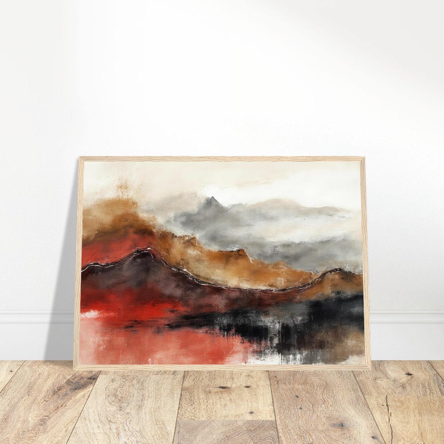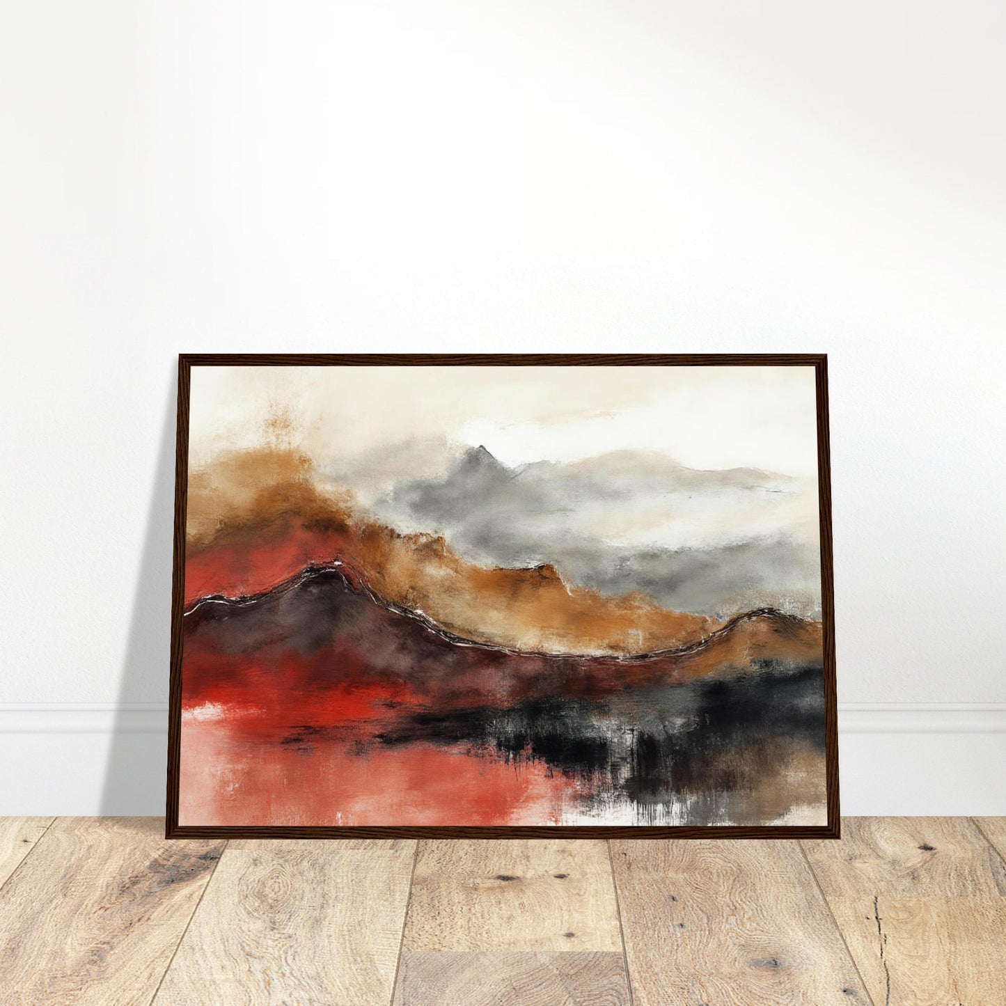 Mountain Mist Abstract Landscape Framed Poster - Red and Brown Art