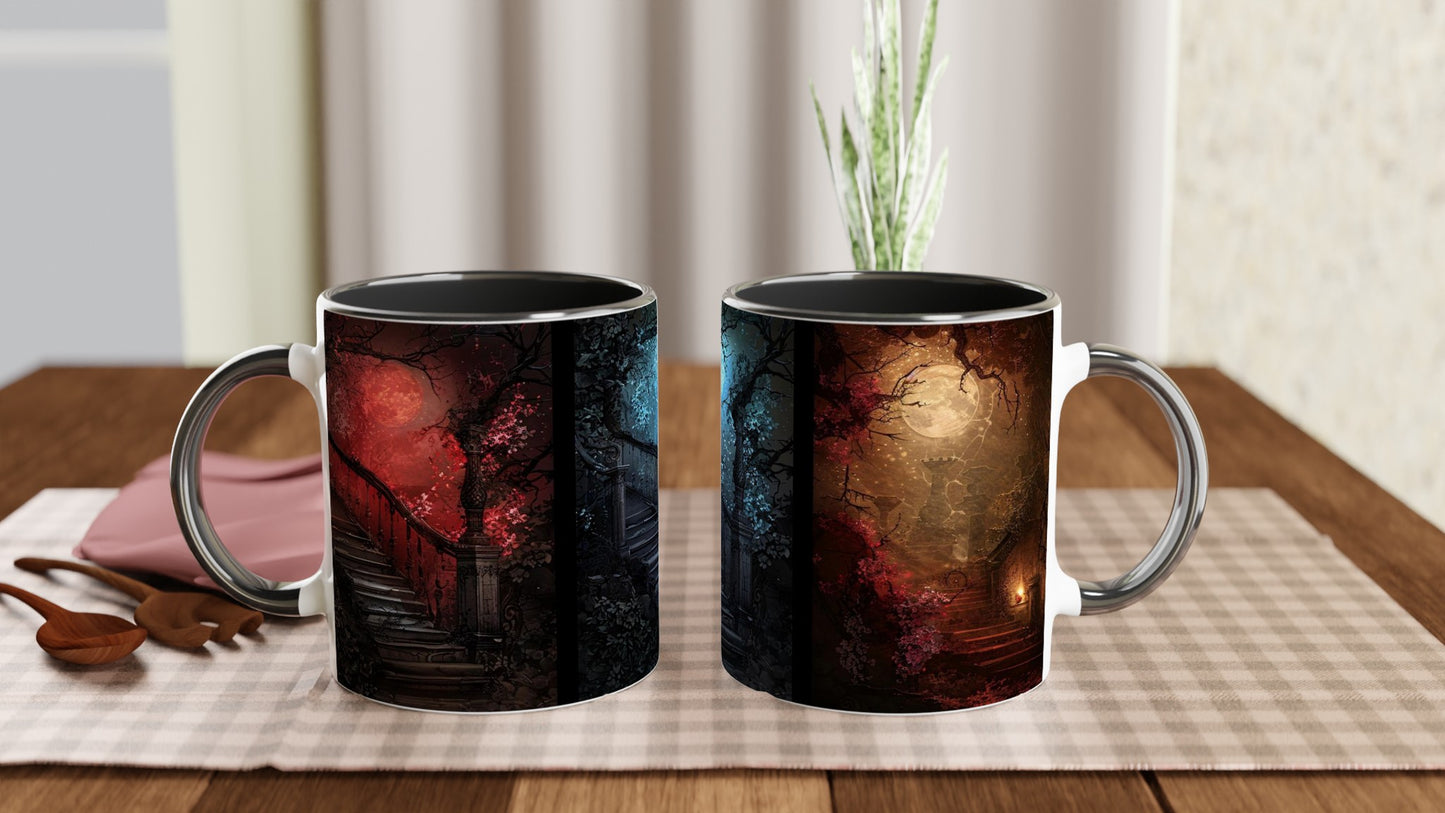 Mystical Moonlit Staircase Gothic Mug - Dark Fantasy Night Scene