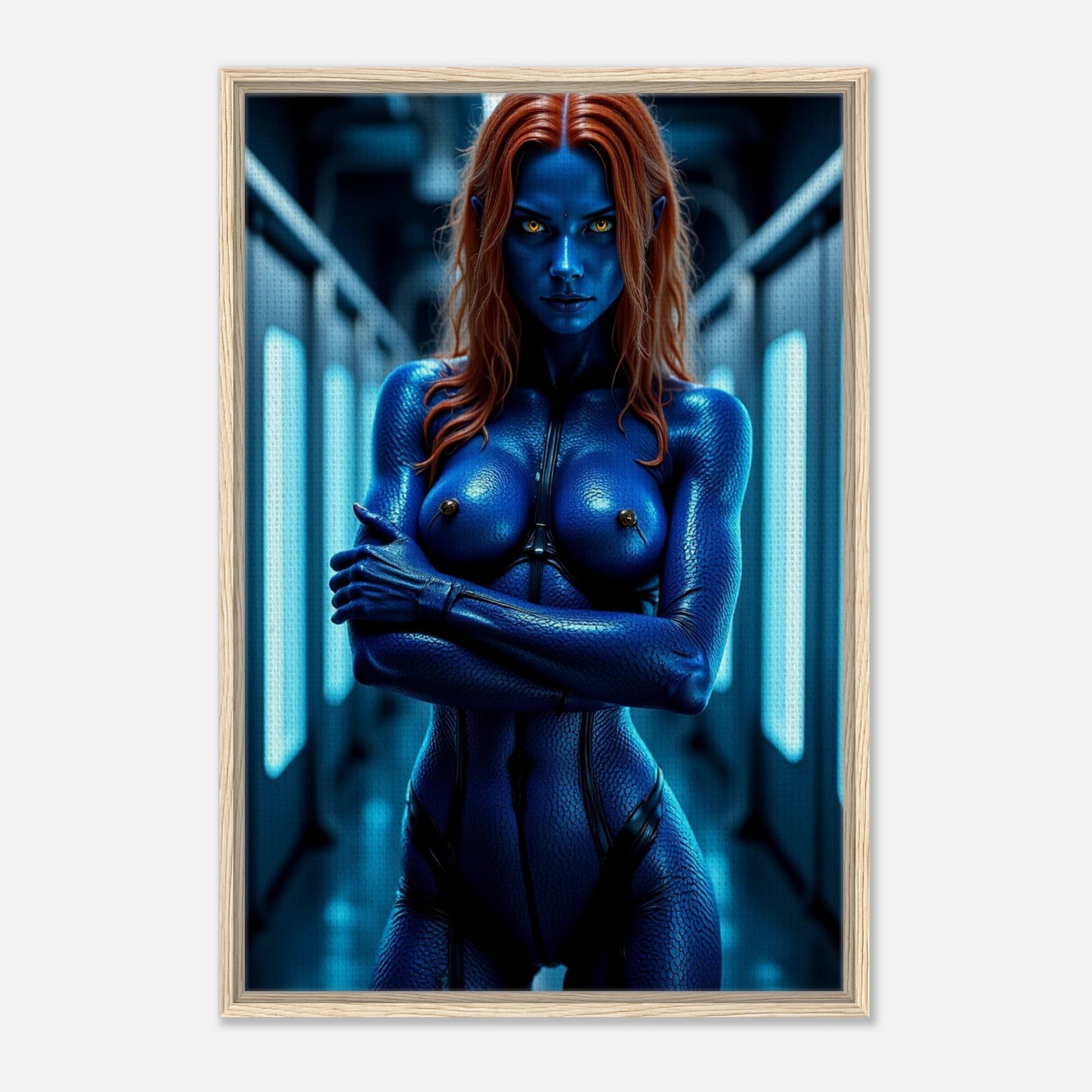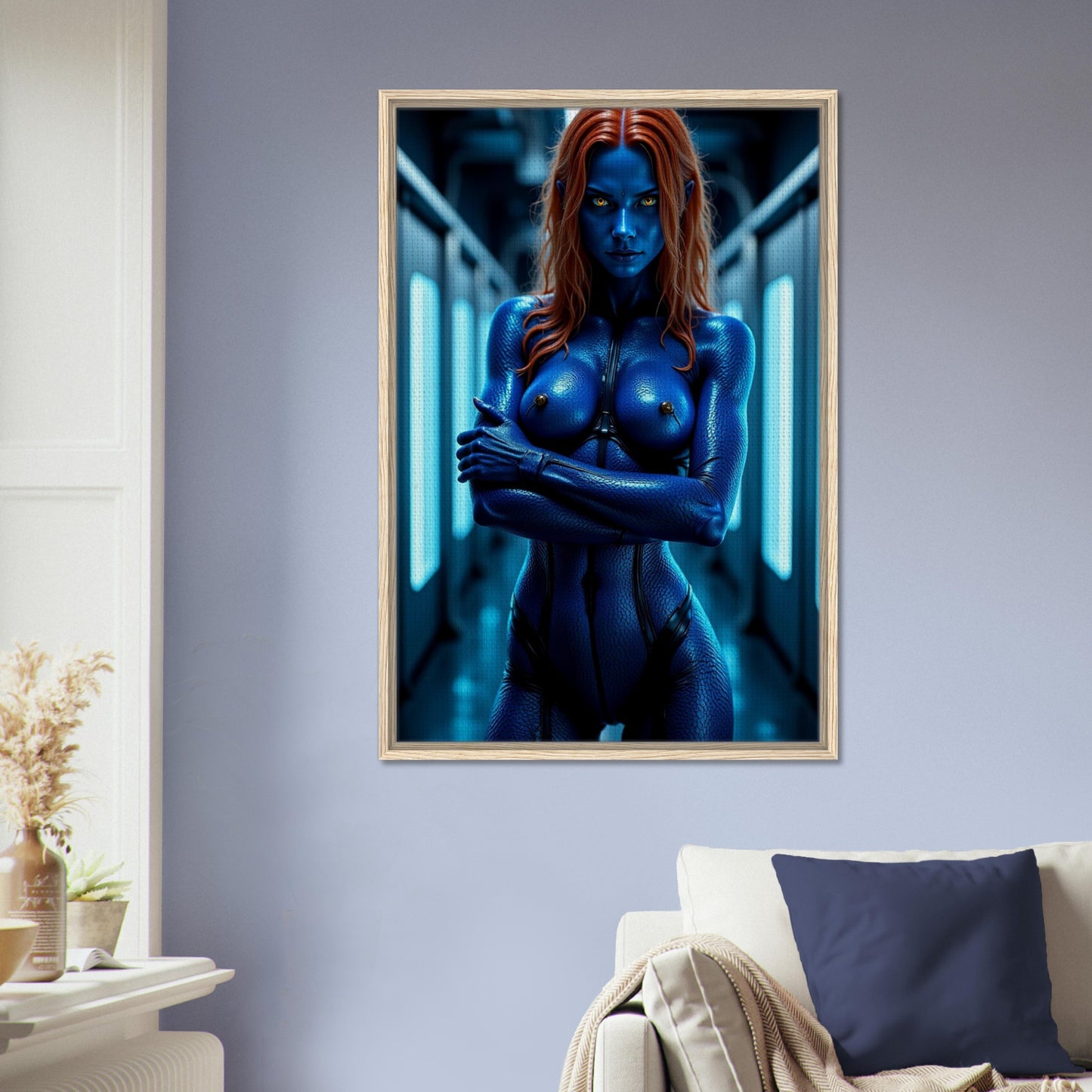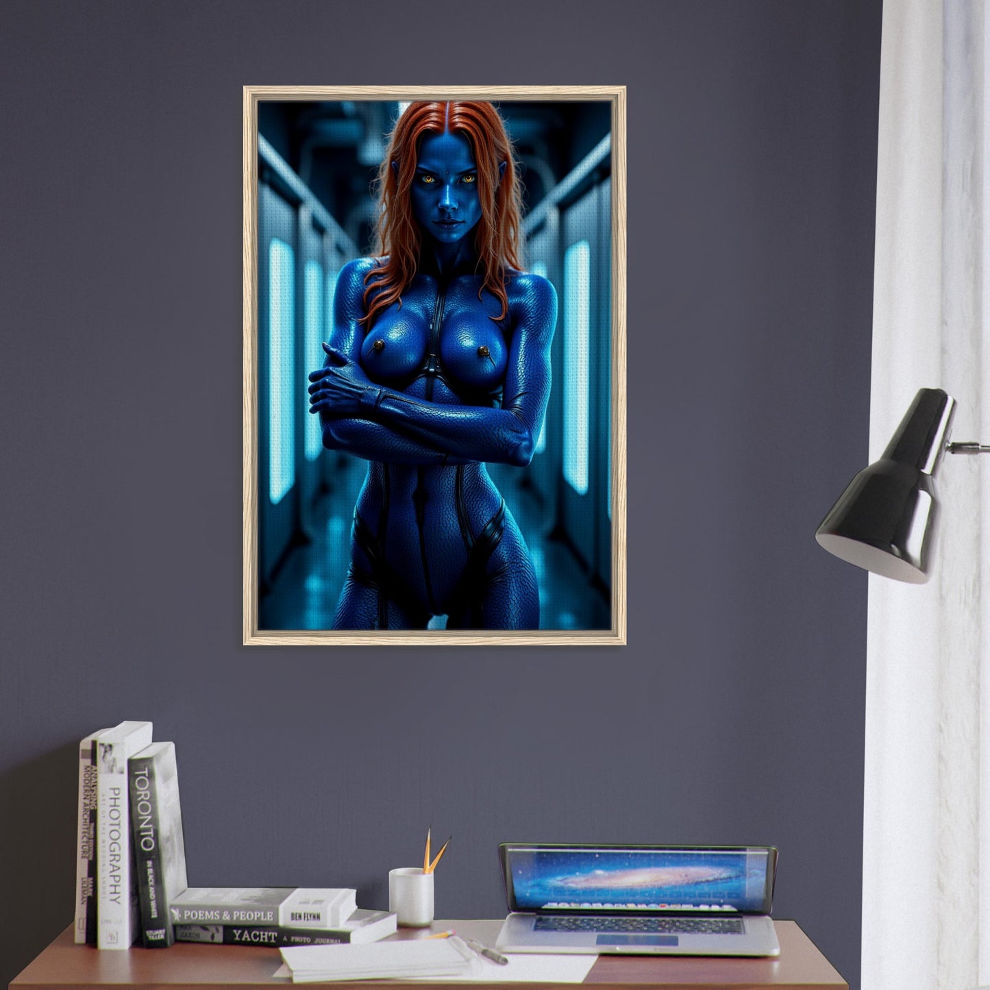 Mystique Blue Warrior Framed Canvas Wall Art - Sci-Fi Character