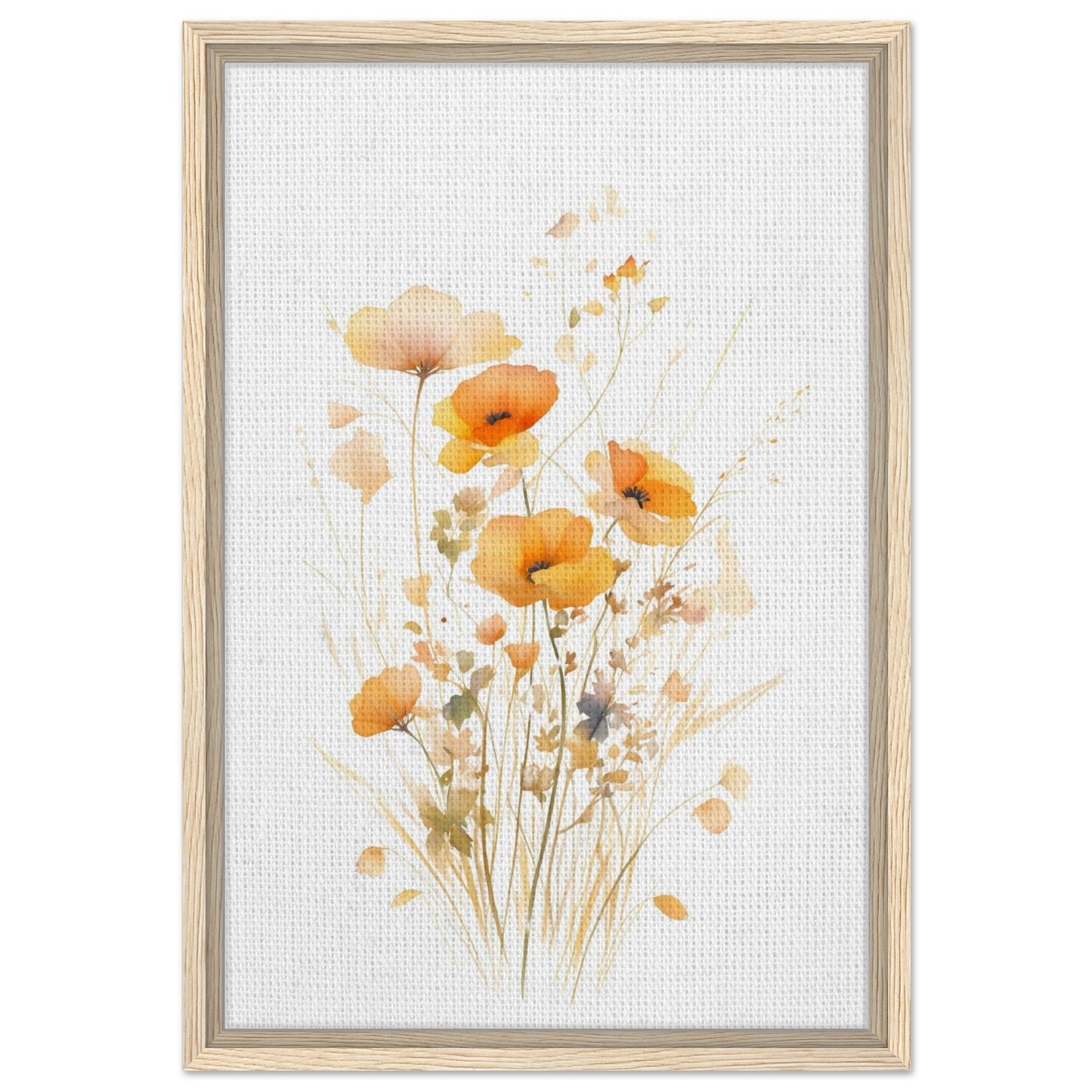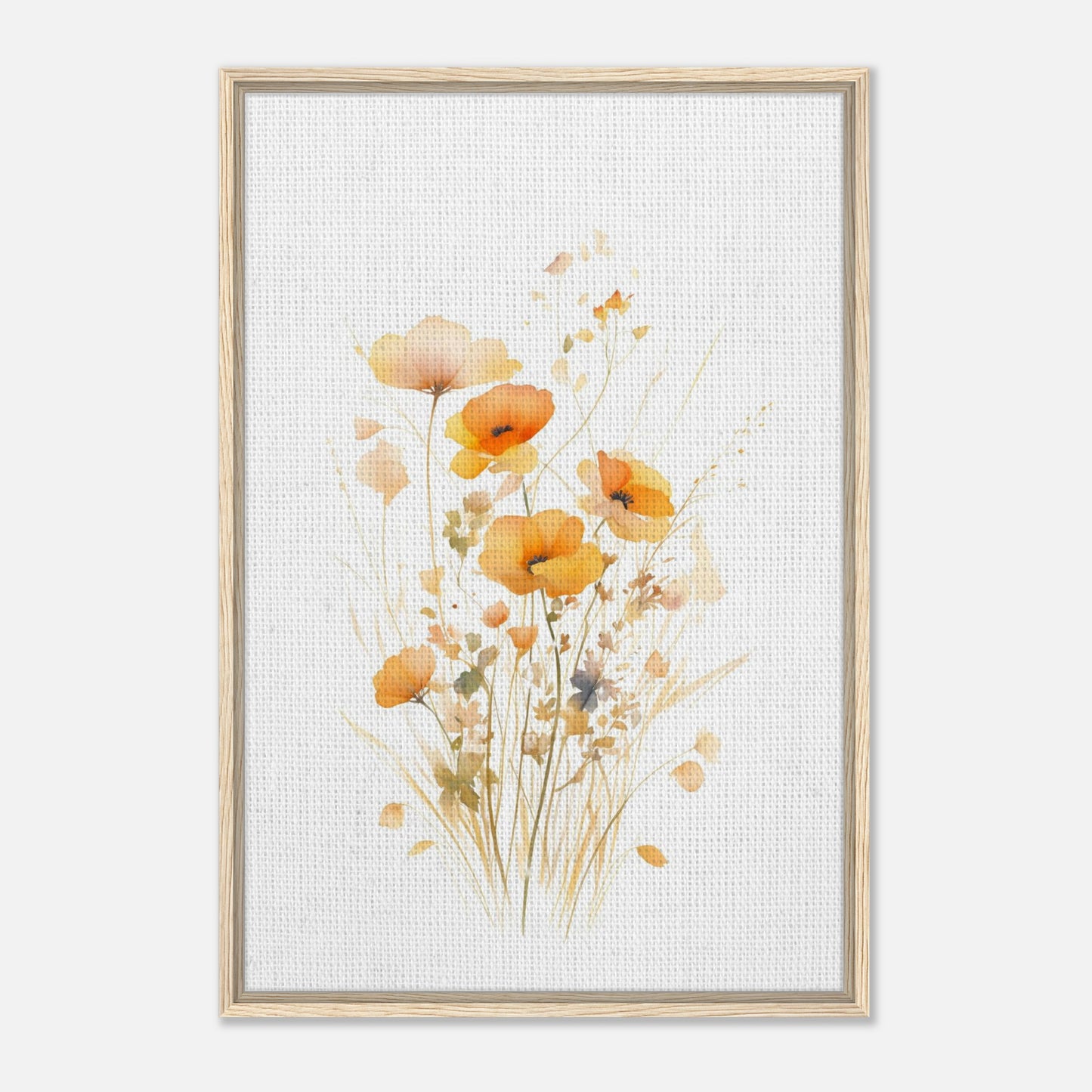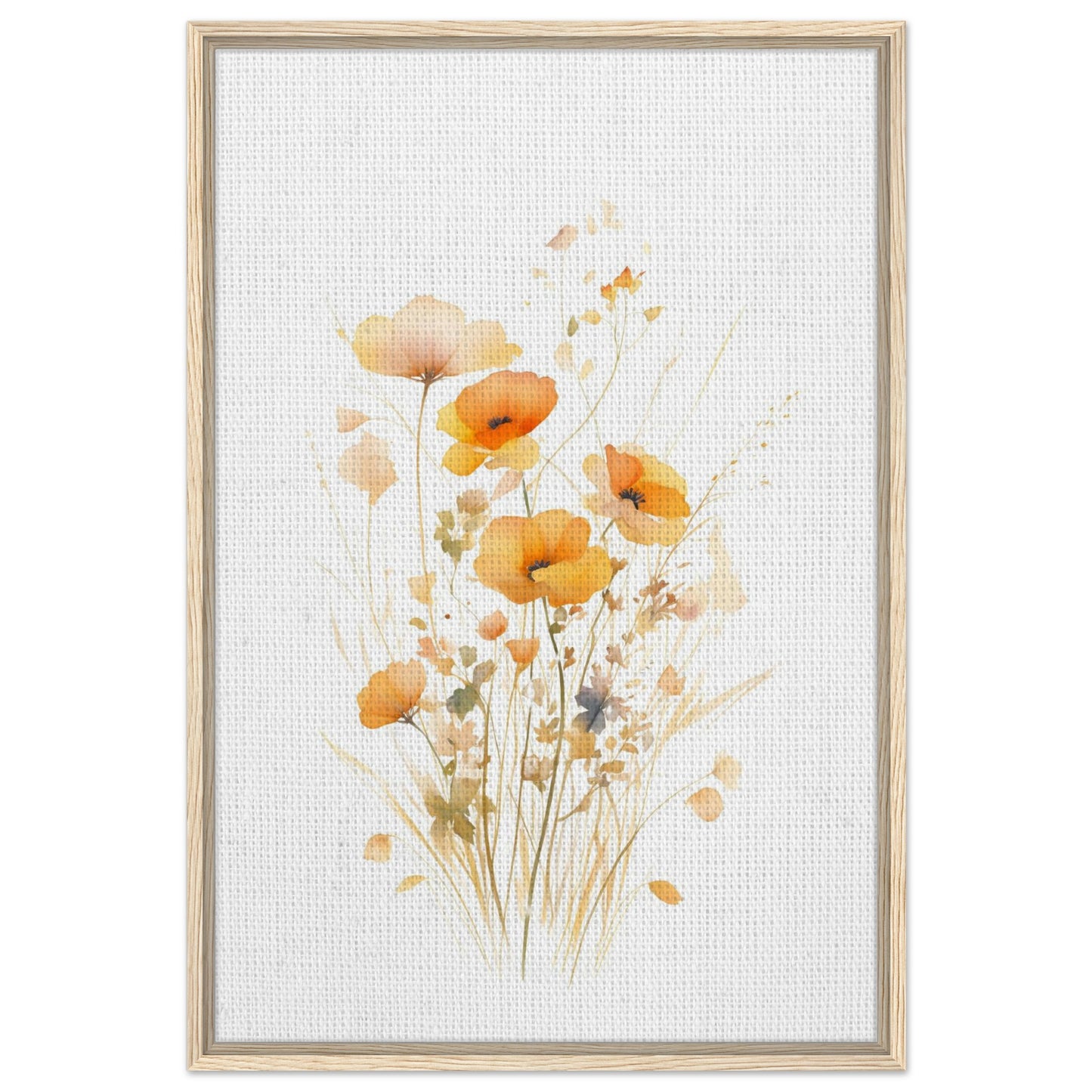 Orange Watercolor Poppies Framed Canvas Wall Art, Delicate Floral Botanical