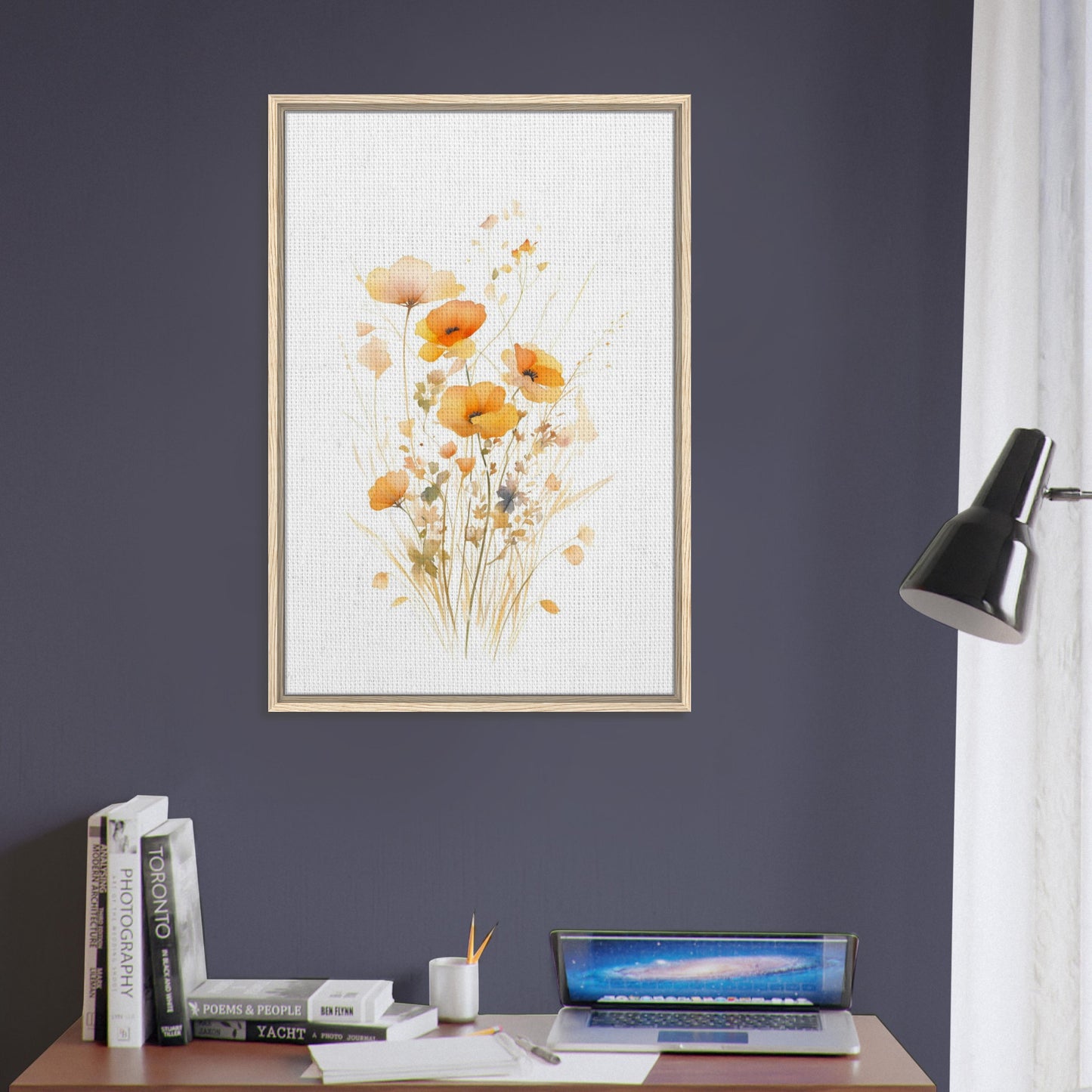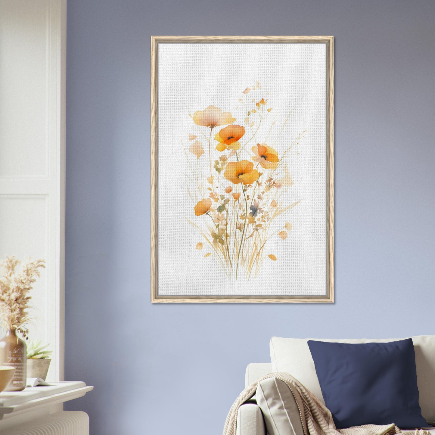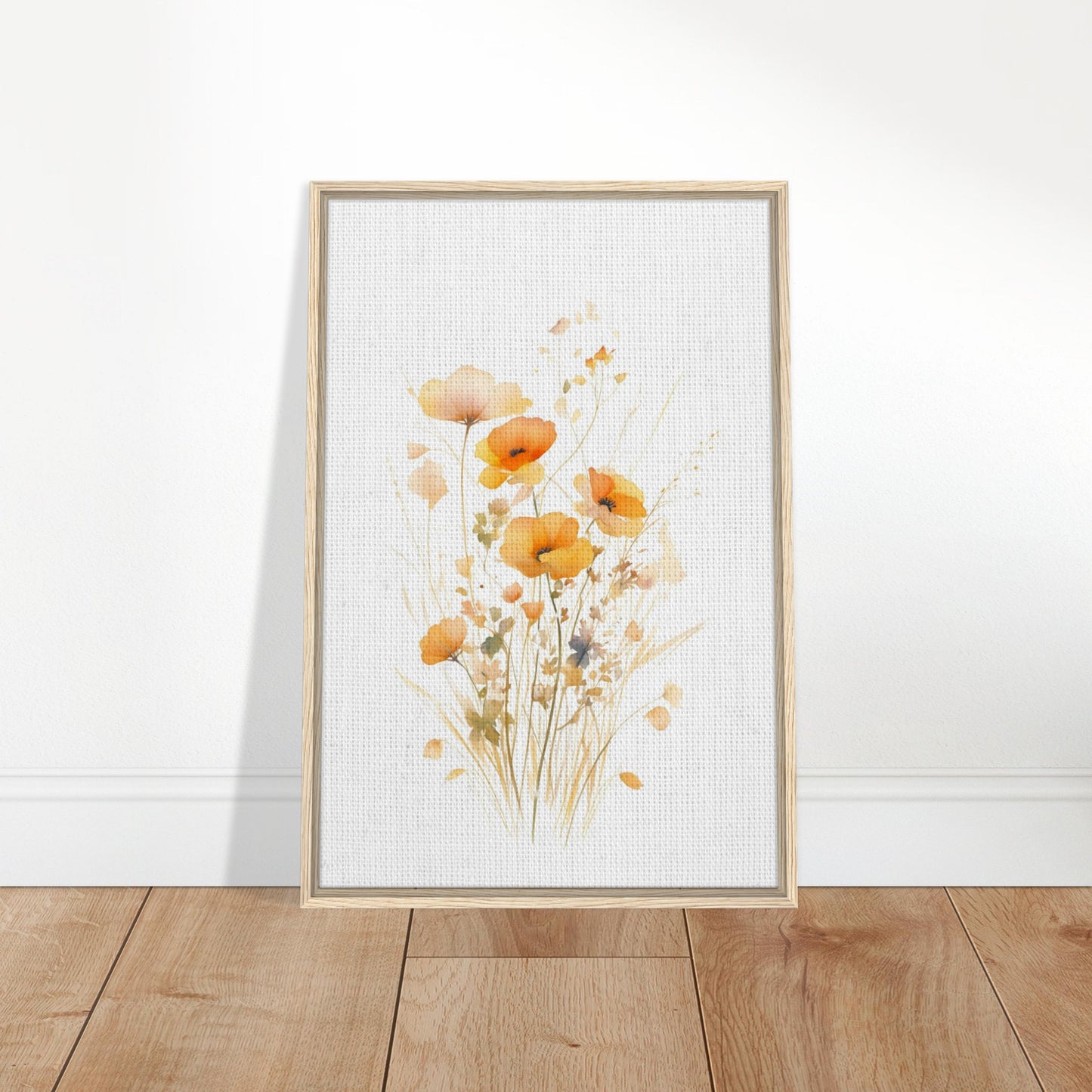 Orange Watercolor Poppies Framed Canvas Wall Art, Delicate Floral Botanical