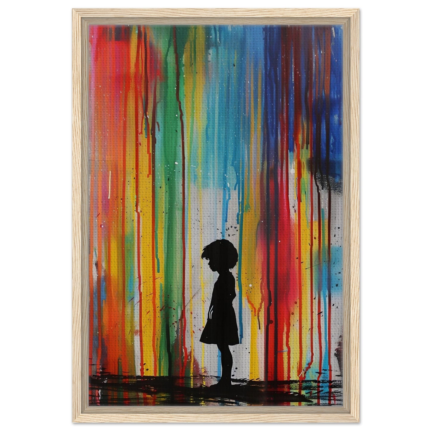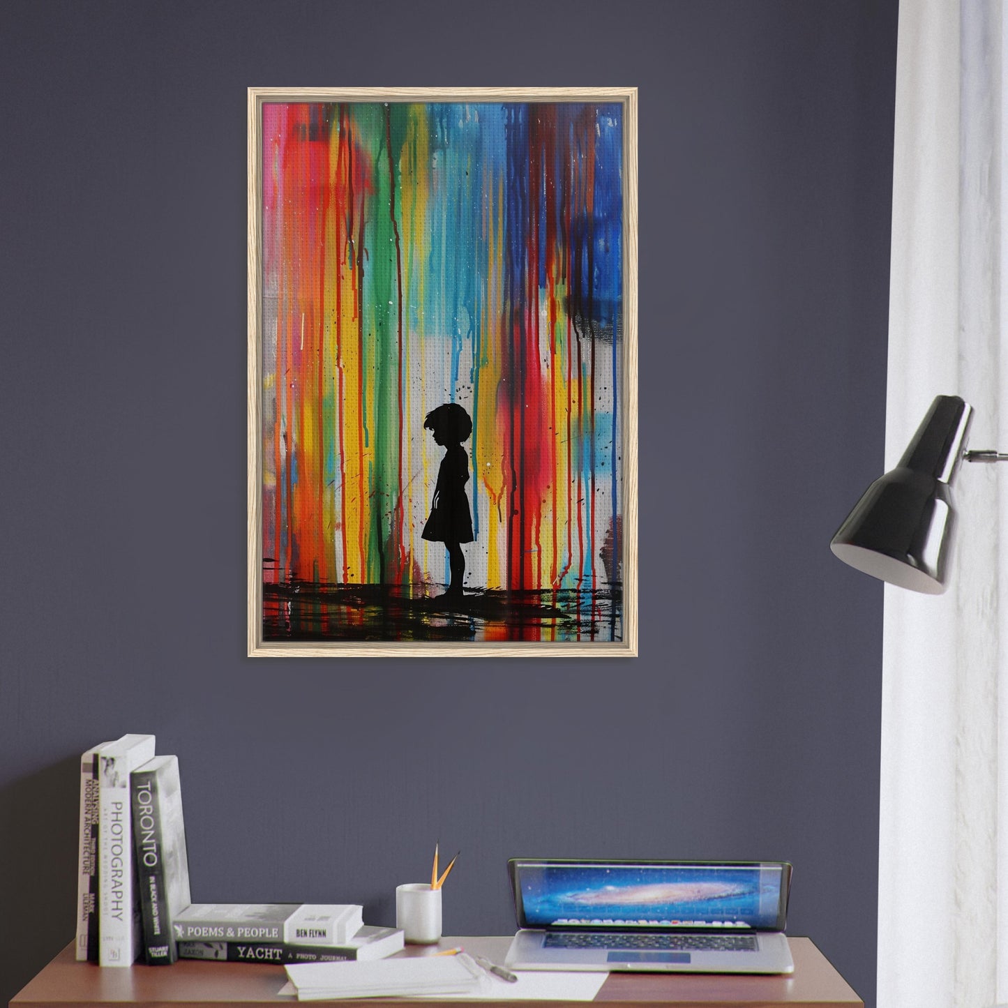 Rainbow Rain Silhouette Framed Canvas Wall Art - Colorful Modern Art