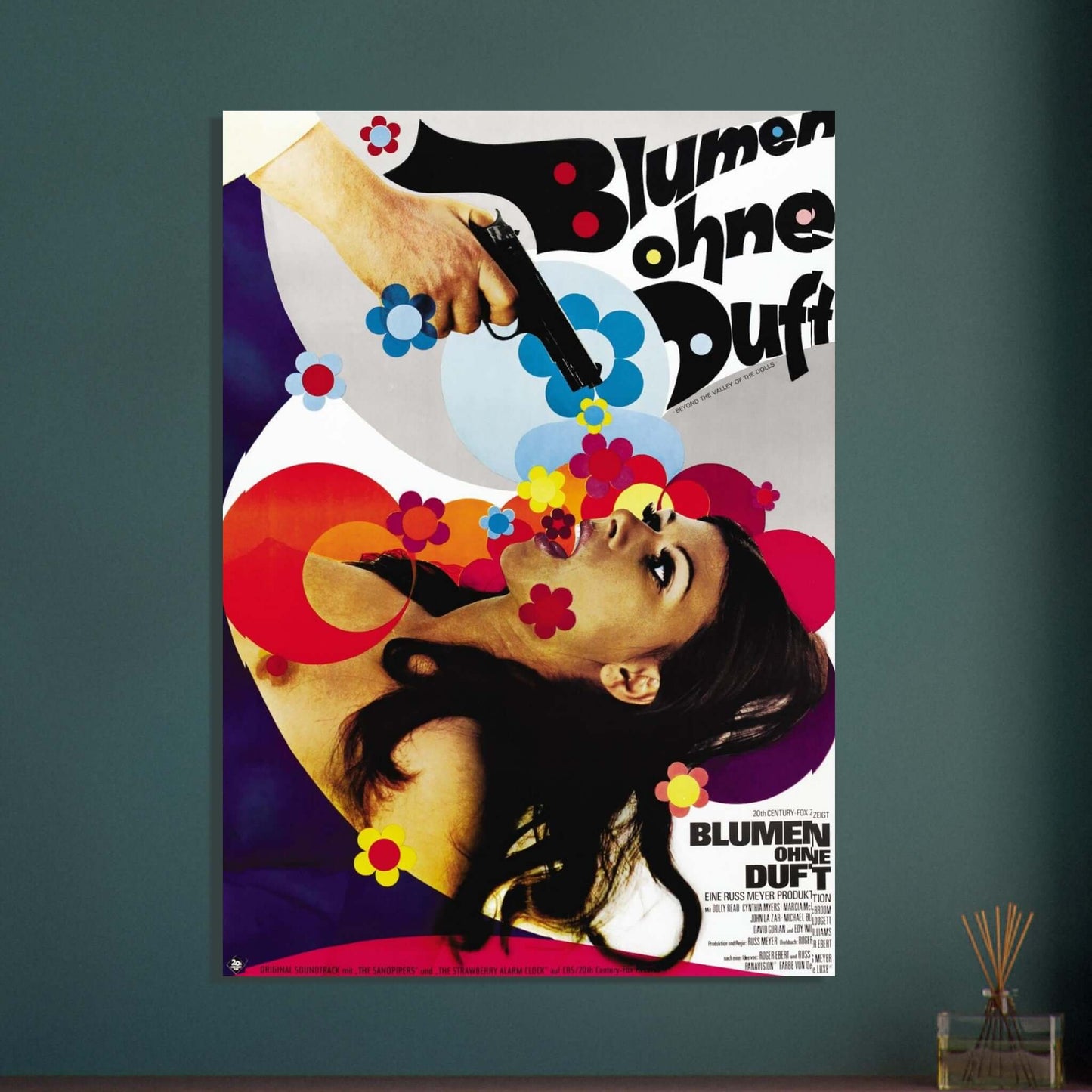 Retro 60s Movie Poster Framed Canvas Wall Art - Psychedelic Floral Design