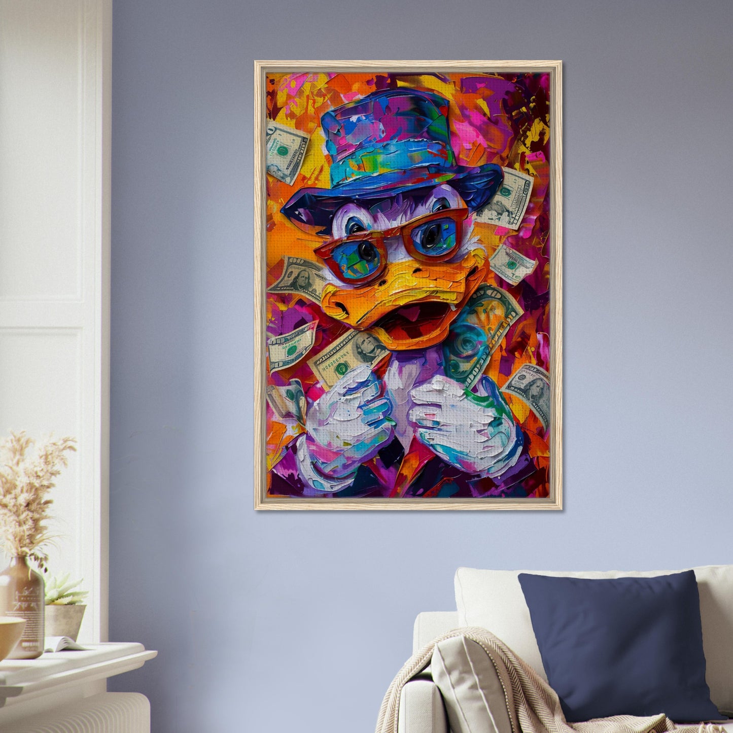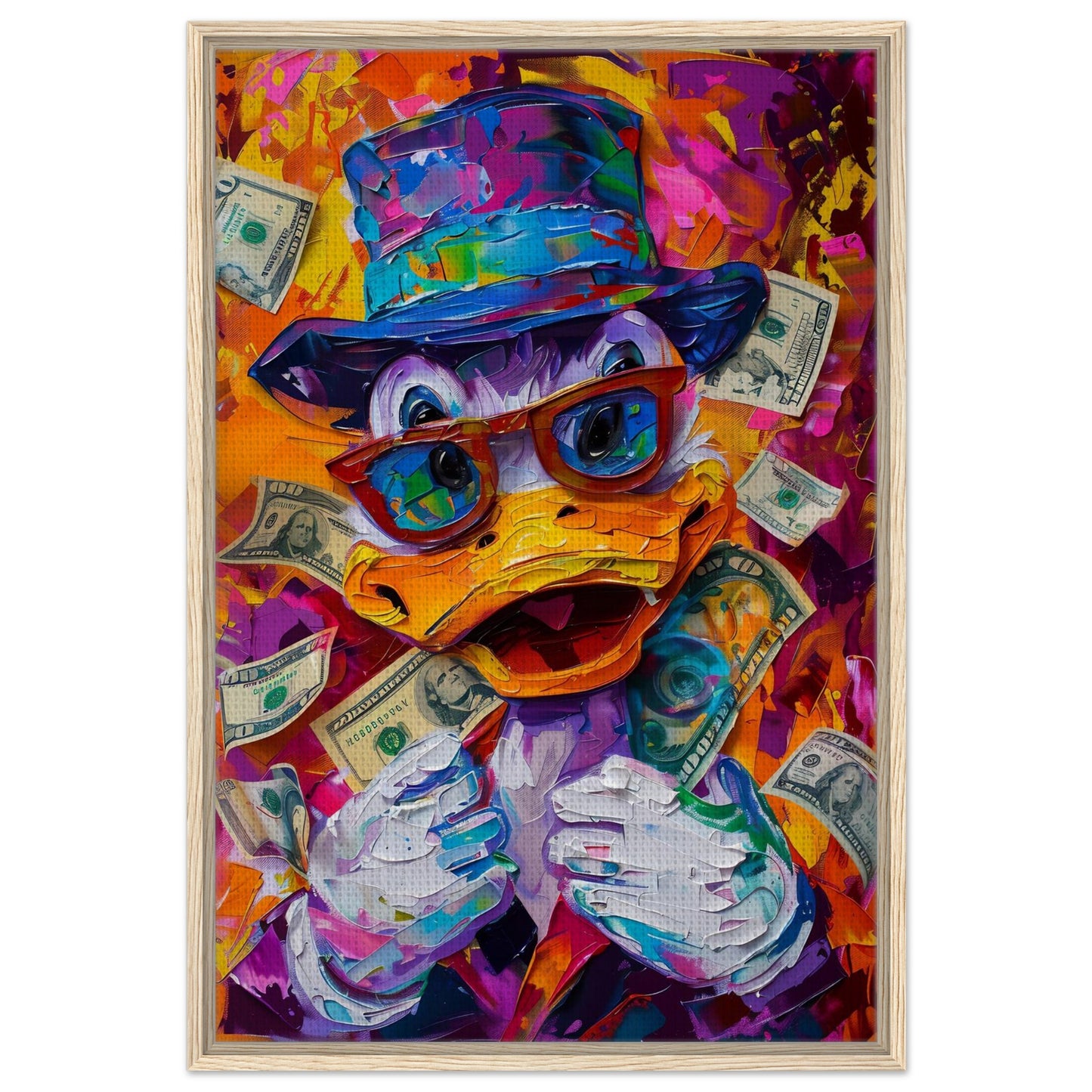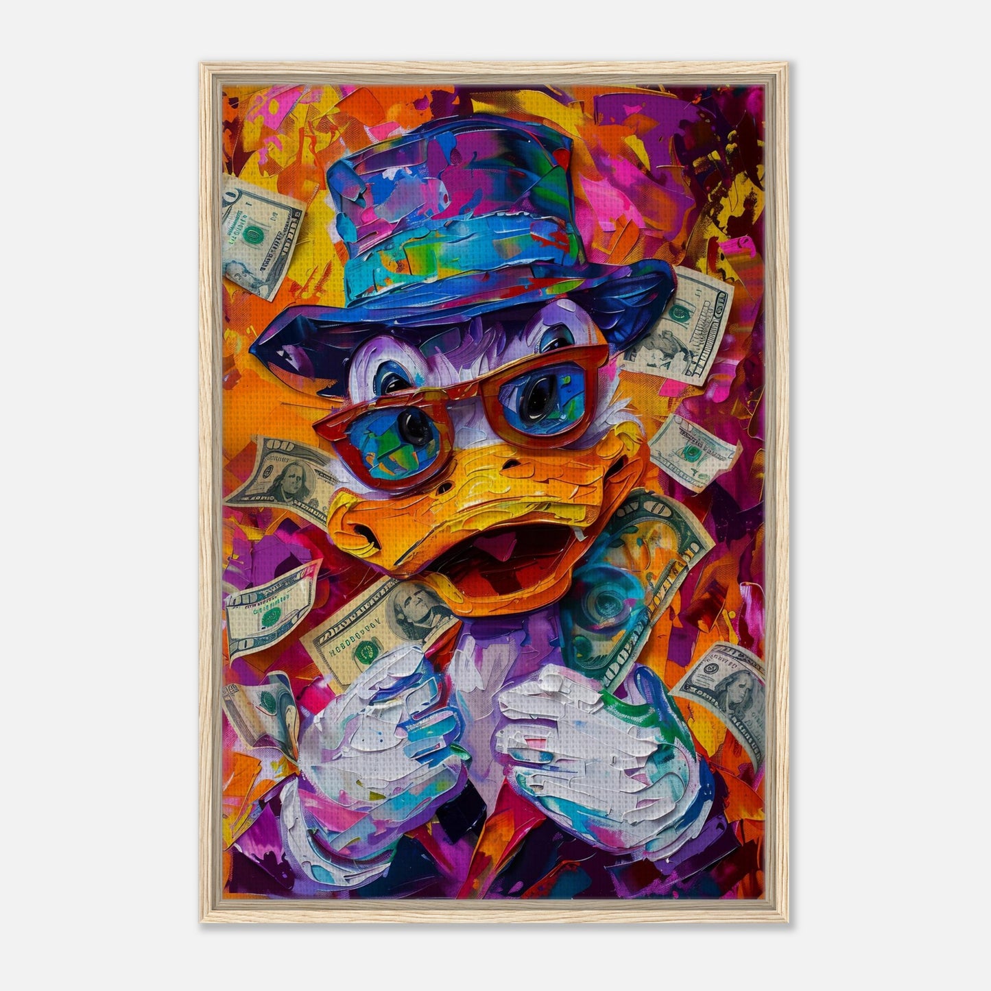 Rich Duck Pop Art Framed Canvas Wall Art - Colorful Money Character