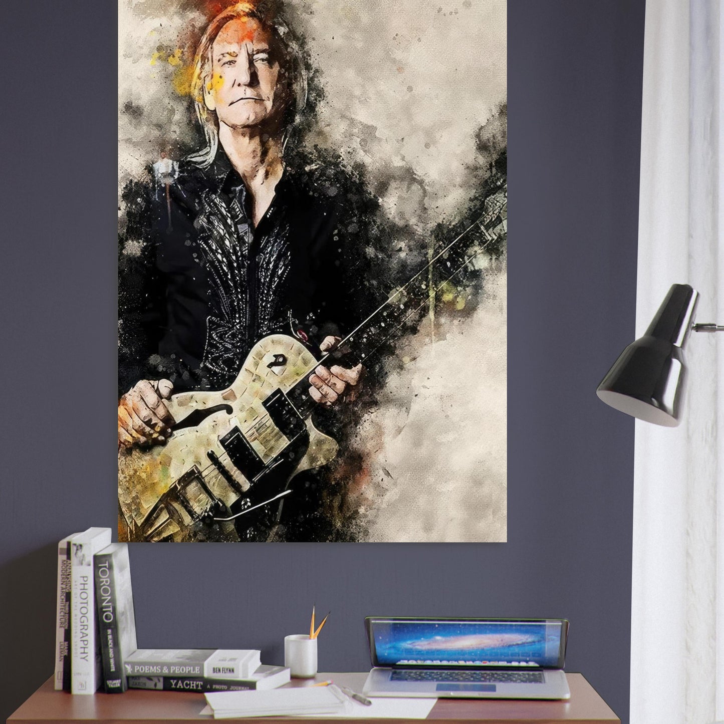 Rock Guitarist Watercolor Style Art Poster Music Wall Decor",