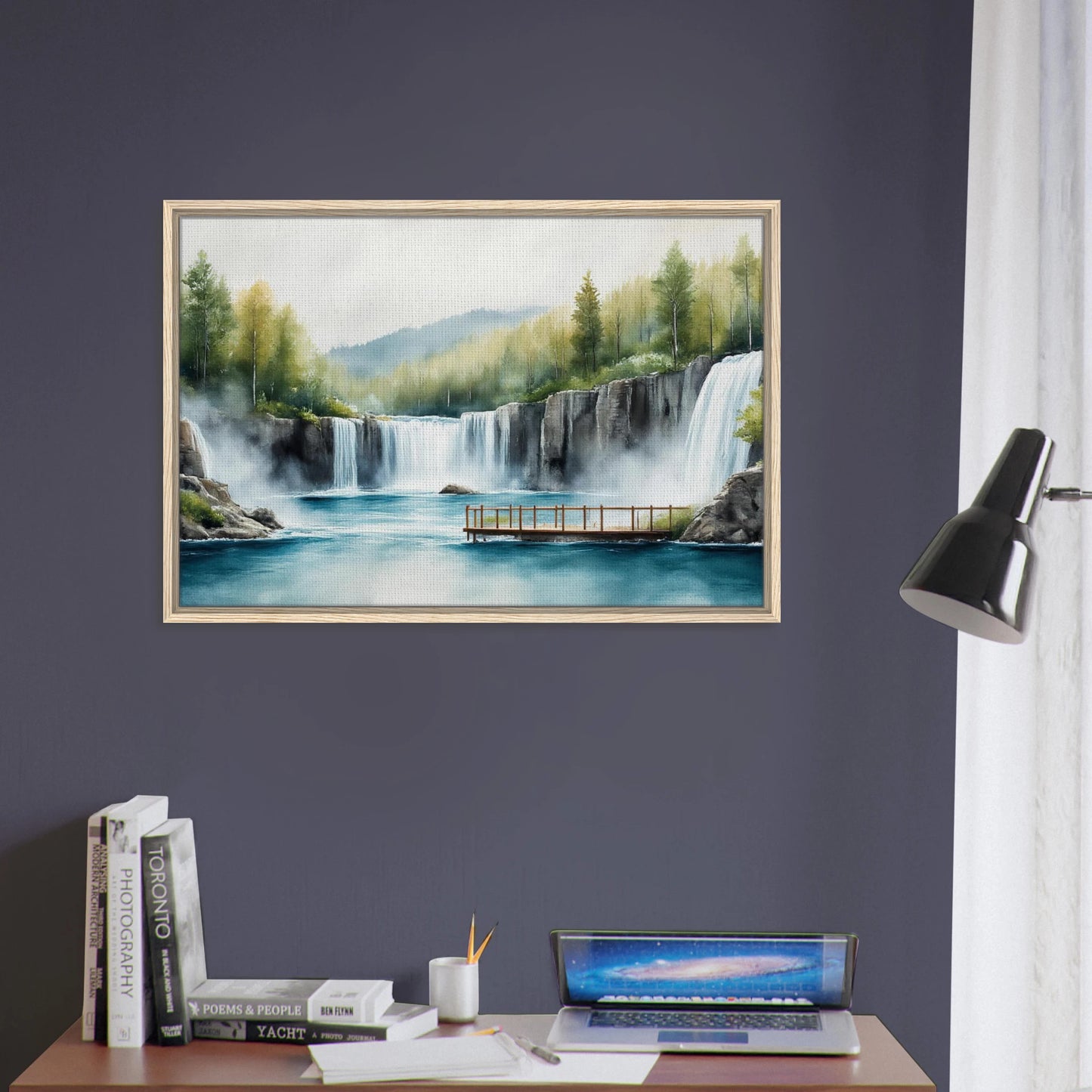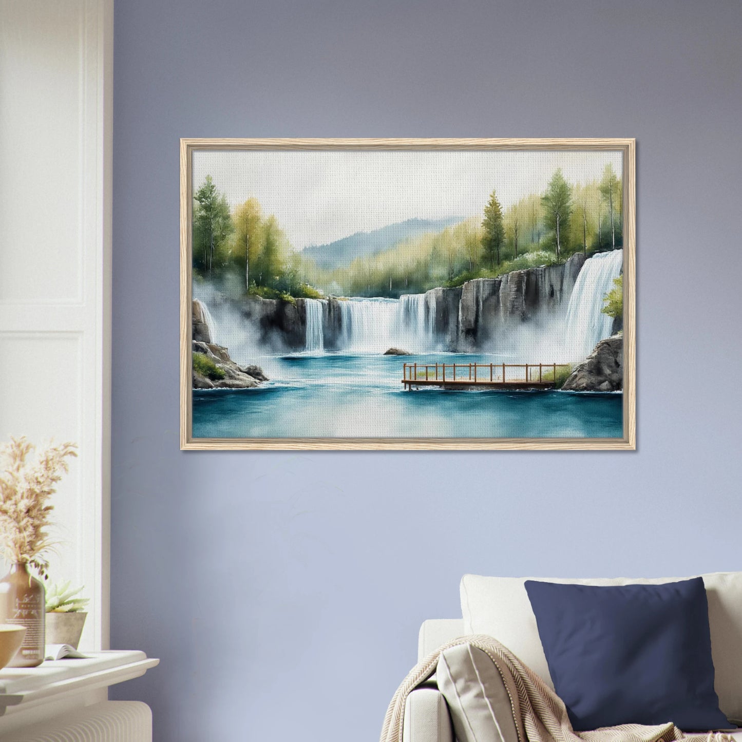 Serene Waterfall Lake Landscape Framed Canvas Wall Art