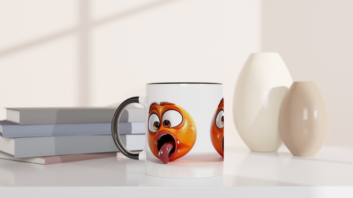 Silly Orange Faces Emoji Coffee Mug - Funny Cartoon Expression Design