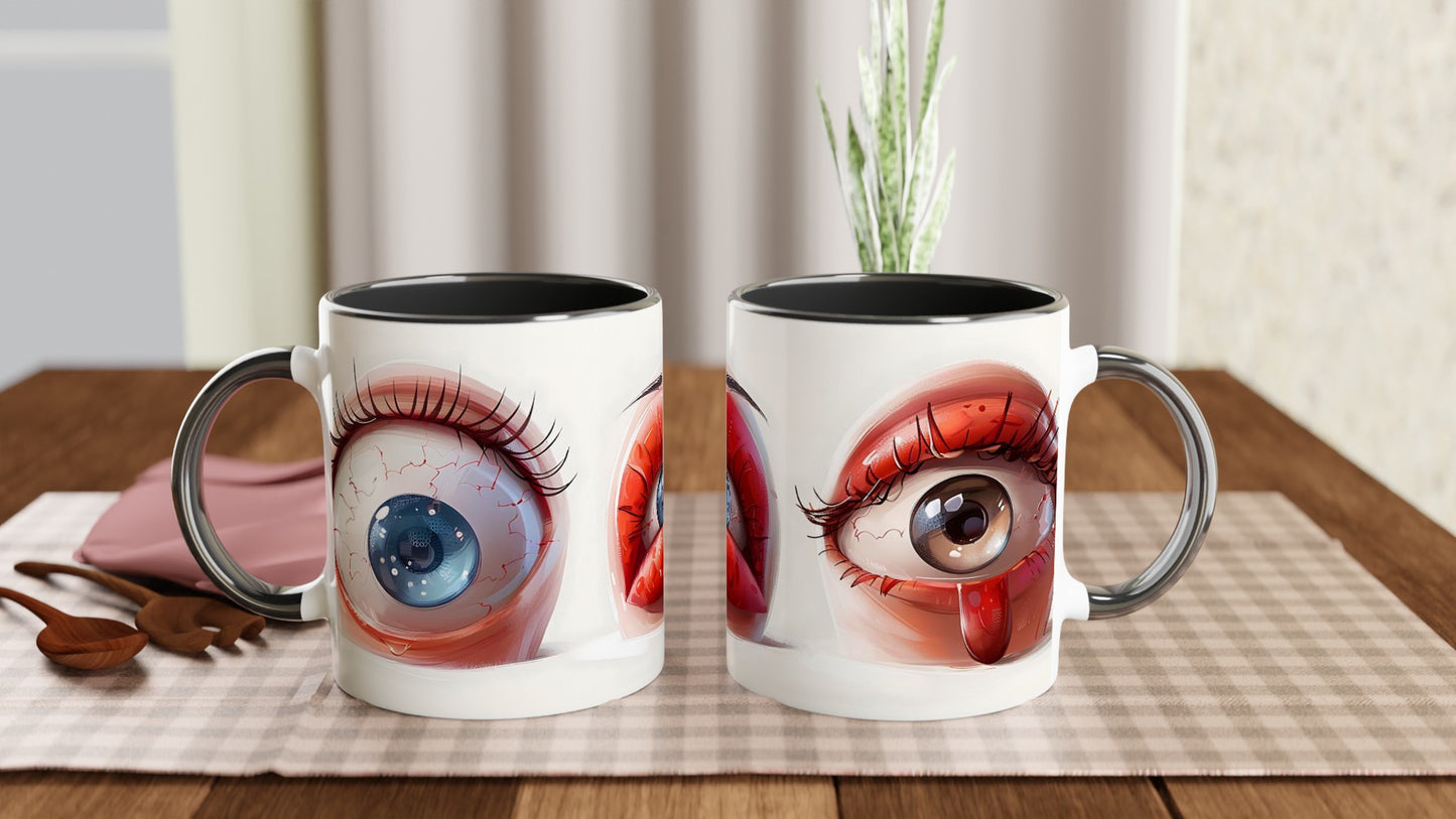 Surreal Eyes and Lips Art Mug - Creepy Beautiful Gothic Design