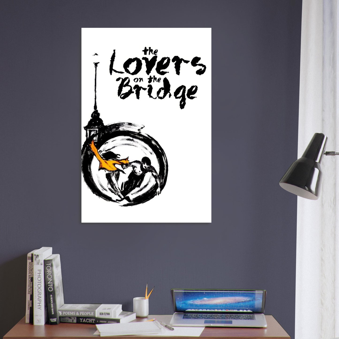 The Lovers on the Bridge Movie Poster - Artistic Black Ink & Orange Design