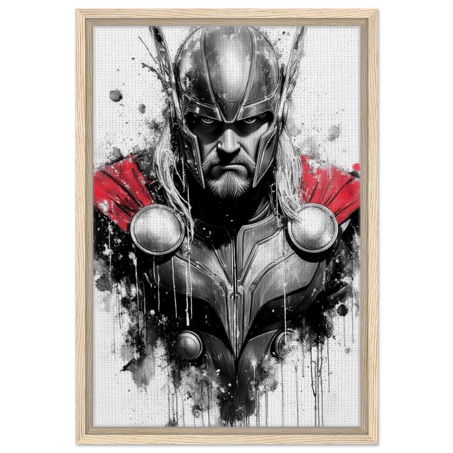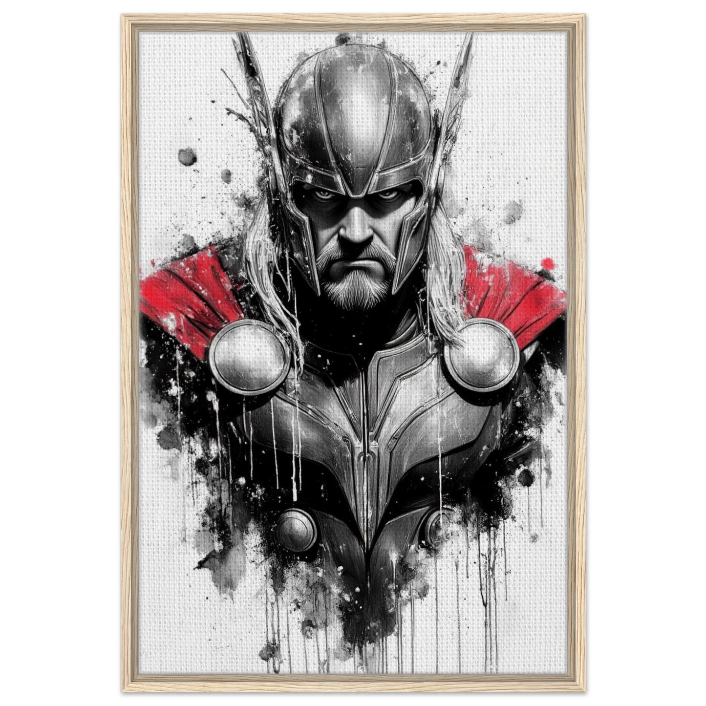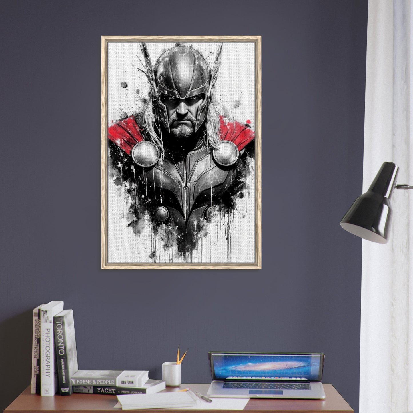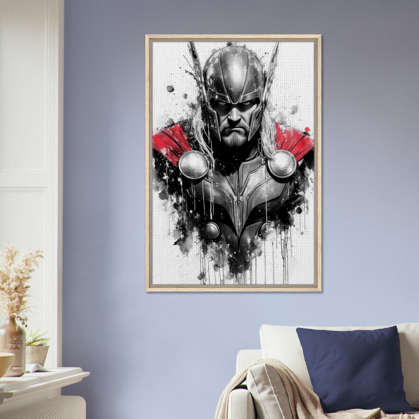 Thor Watercolor Splash Framed Canvas Wall Art - Marvel Superhero