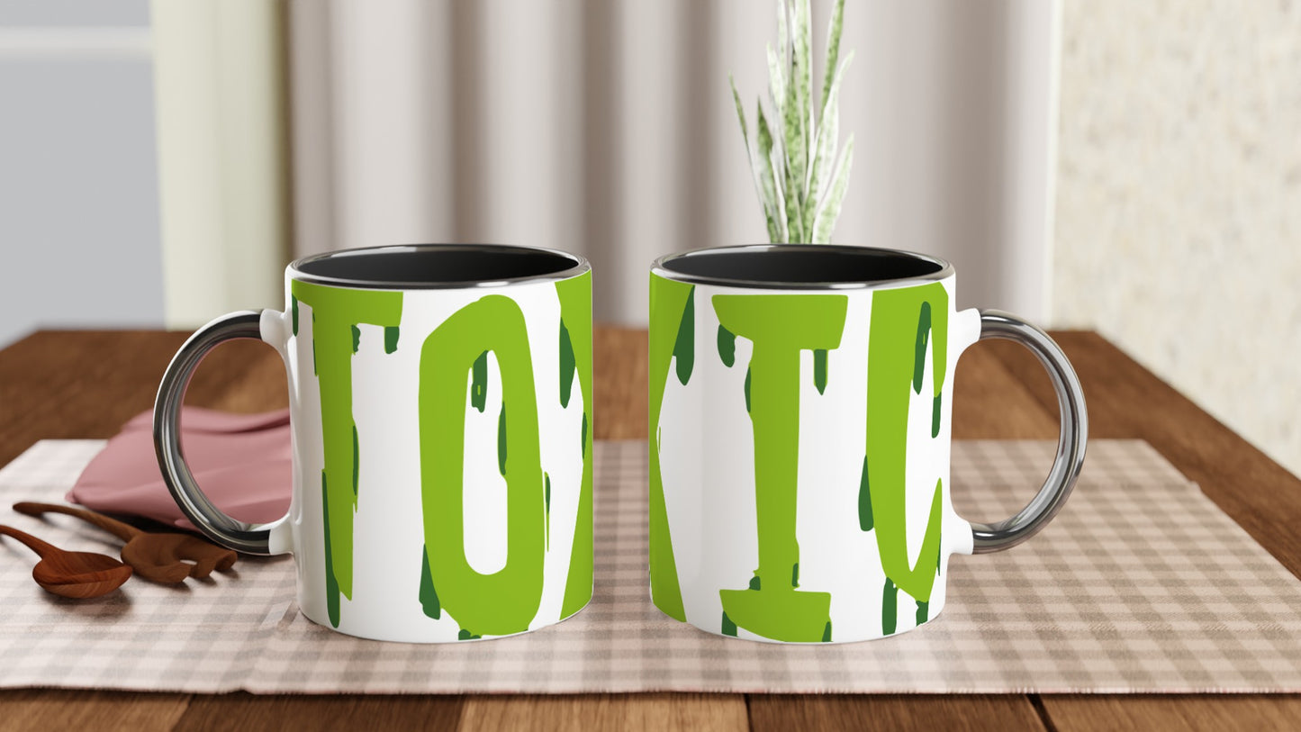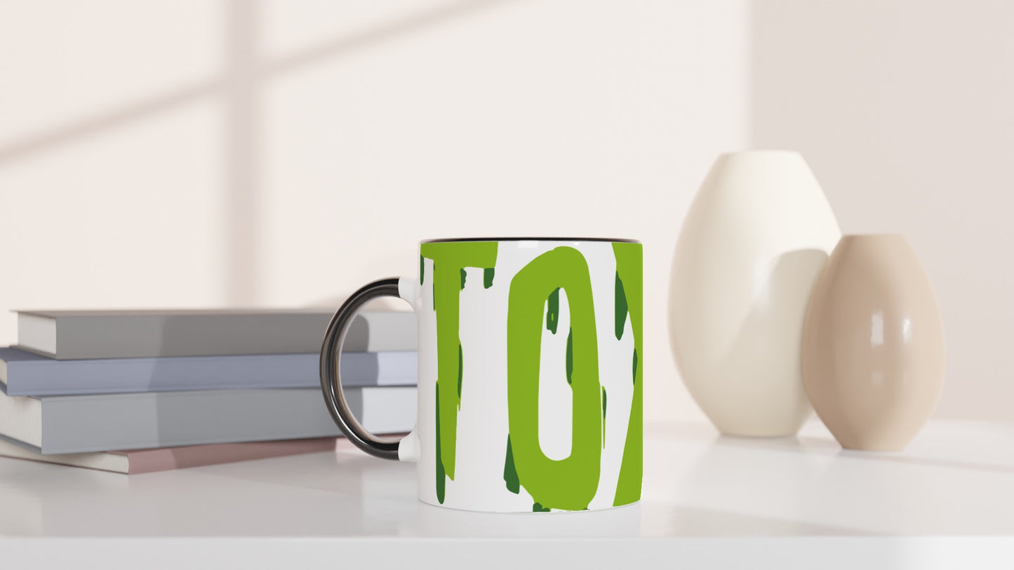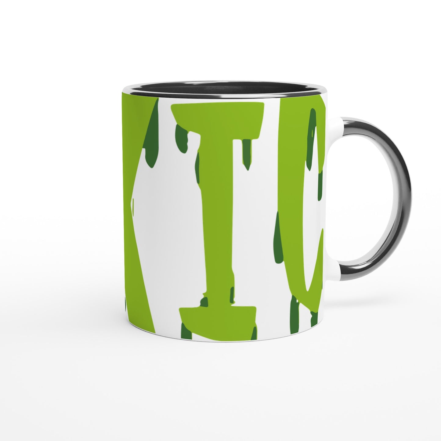This beautiful ceramic mug is perfect for any event of the day. Your morning coffee, a hot chocolate, or any other hot beverage you enjoy. The mug is glossy white with a colored rim, inside, and handle. The prints come out beautifully and vividly on it. The print retains its quality and luster when used in both microwaves and the dishwasher.
