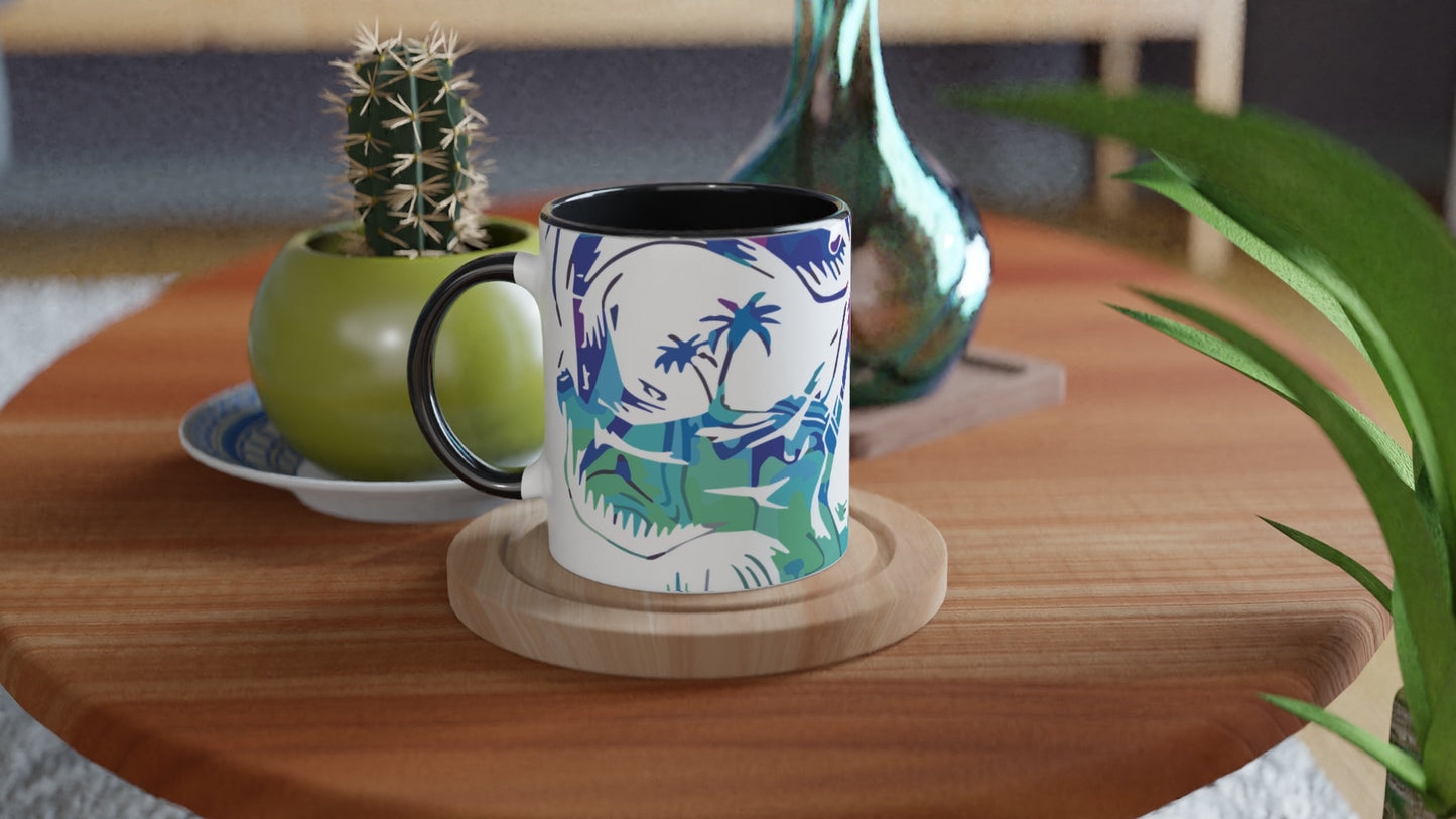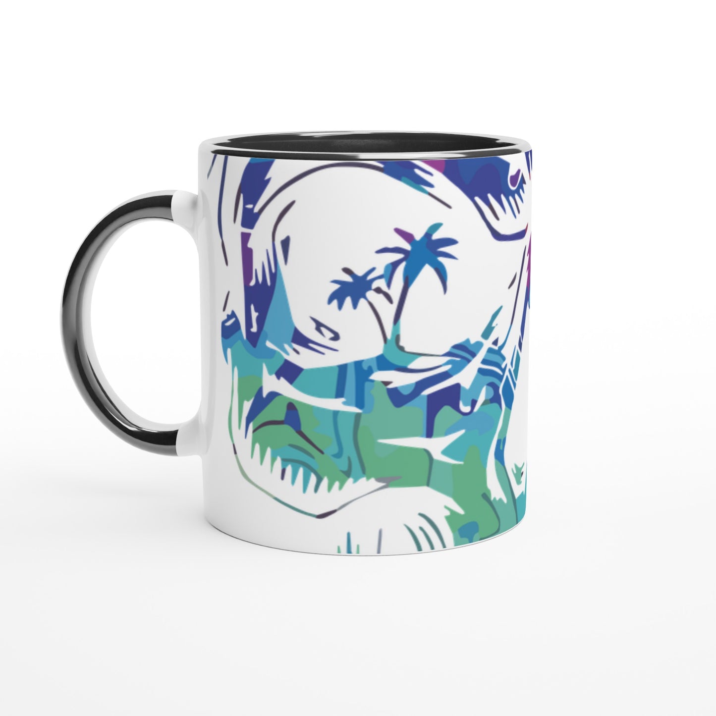 This beautiful ceramic mug is perfect for any event of the day. Your morning coffee, a hot chocolate, or any other hot beverage you enjoy. The mug is glossy white with a colored rim, inside, and handle. The prints come out beautifully and vividly on it. The print retains its quality and luster when used in both microwaves and the dishwasher.