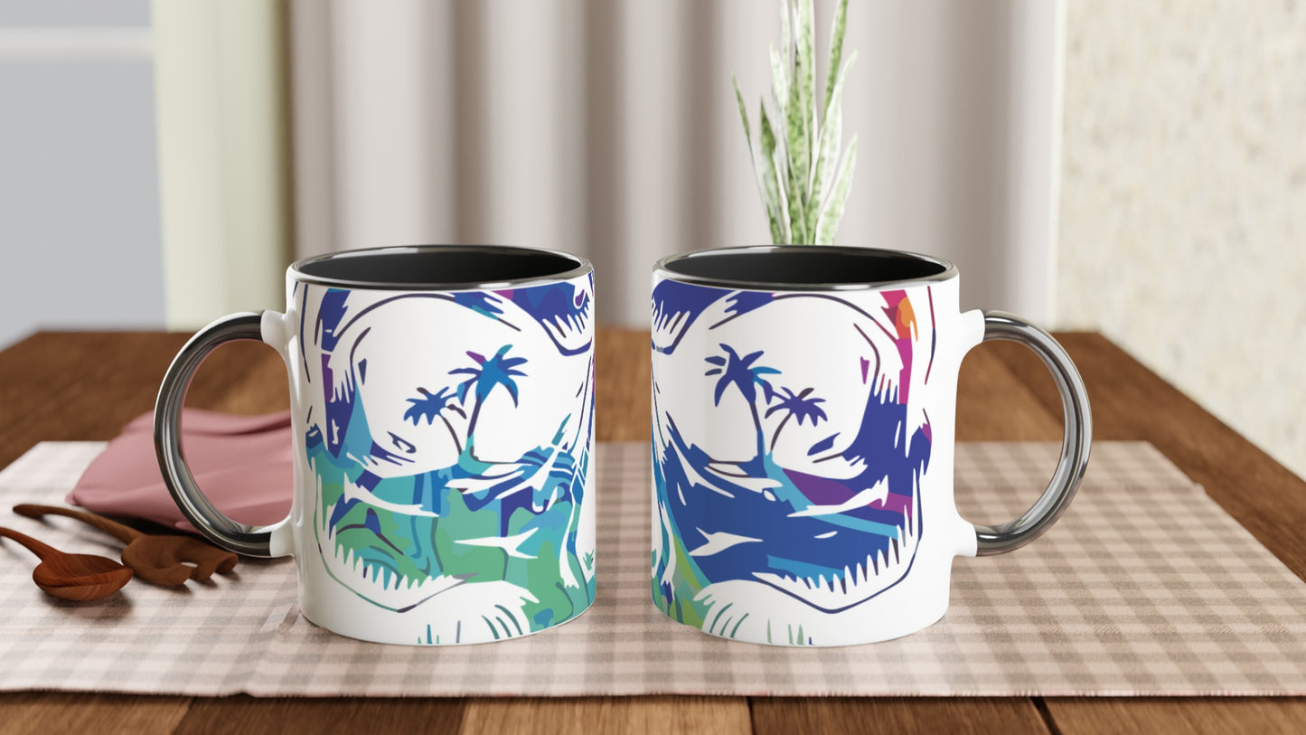 Tropical Skull Paradise Beach Mug - Rainbow Watercolor Palm Tree Design