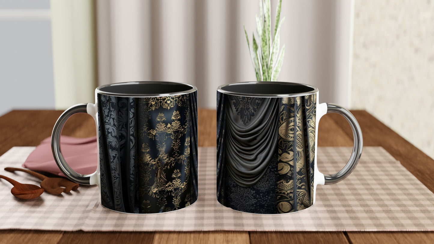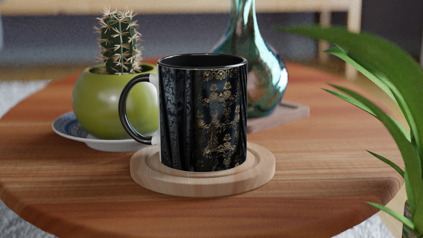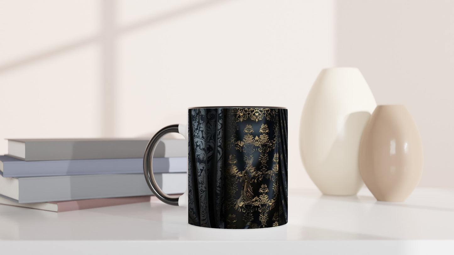 Victorian Damask Pattern Gothic Mug - Elegant Black & Gold Design