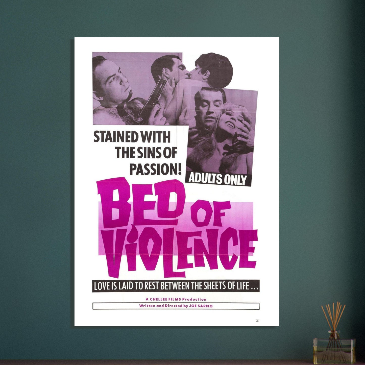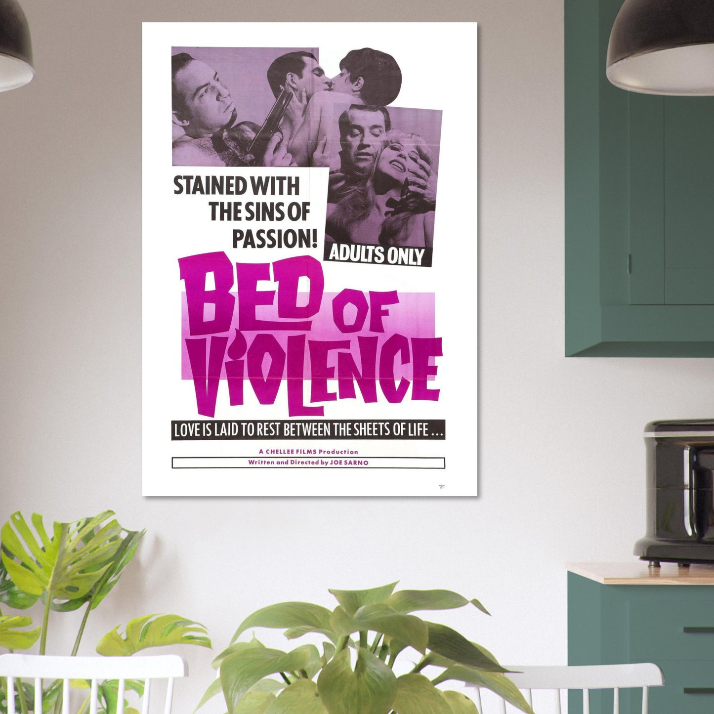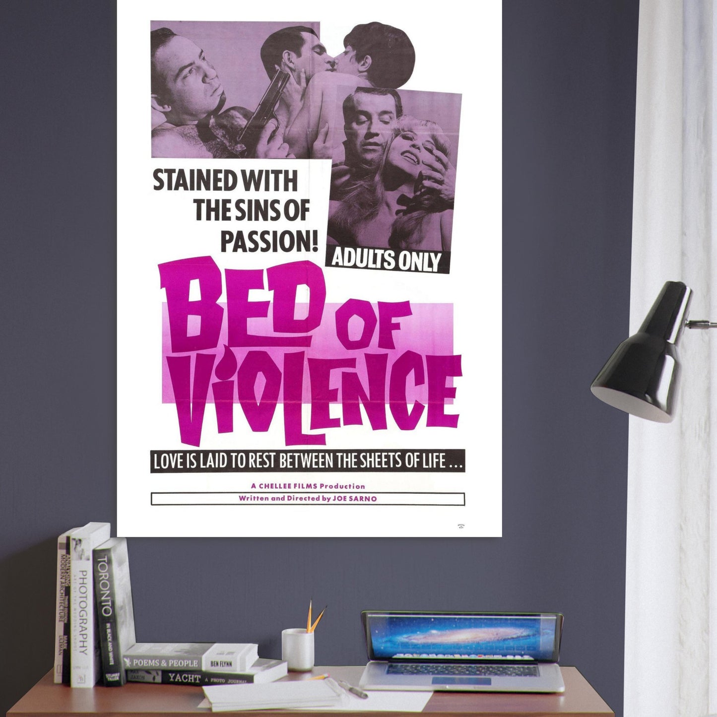 Vintage Horror Movie Framed Canvas - Bed of Violence Retro Film Noir Art