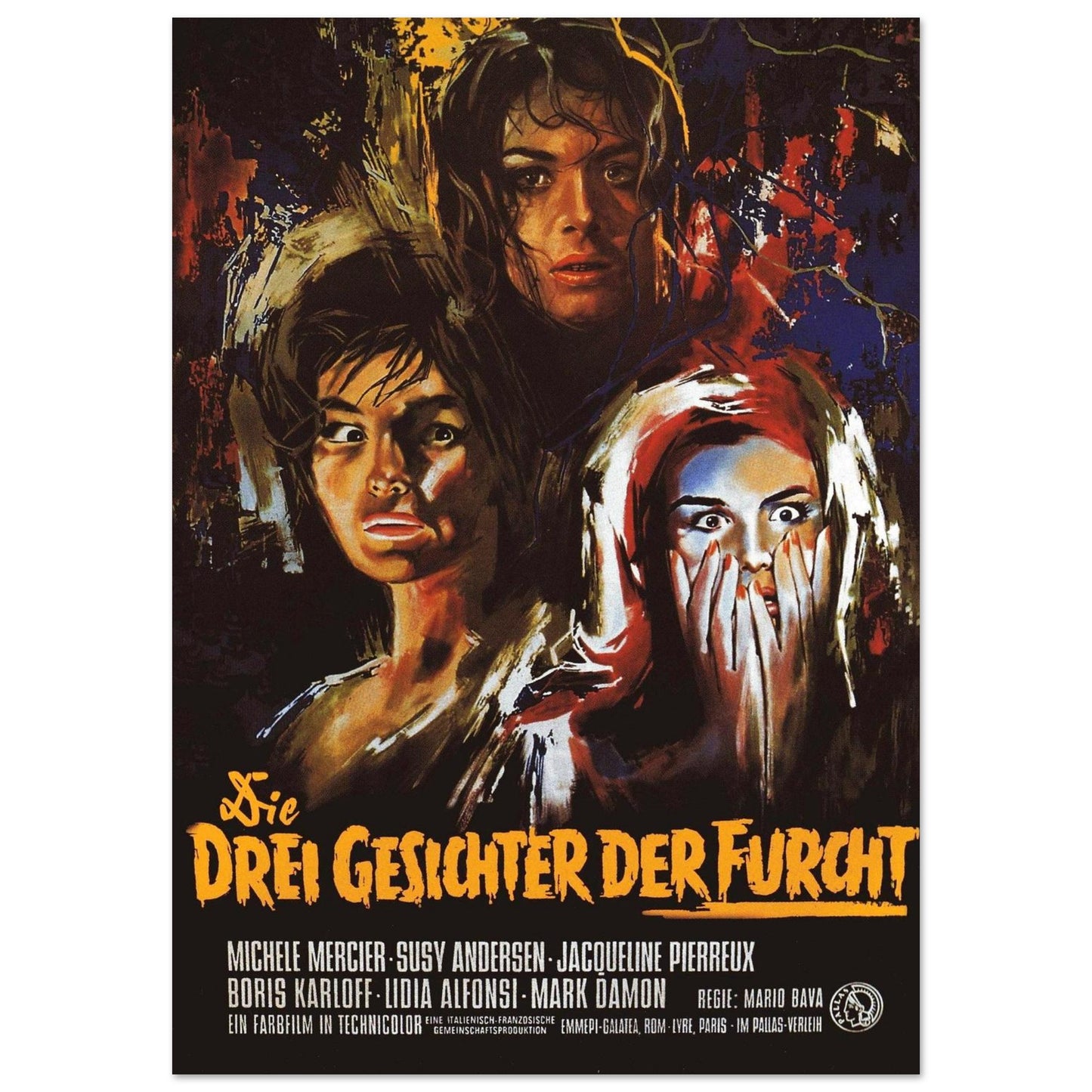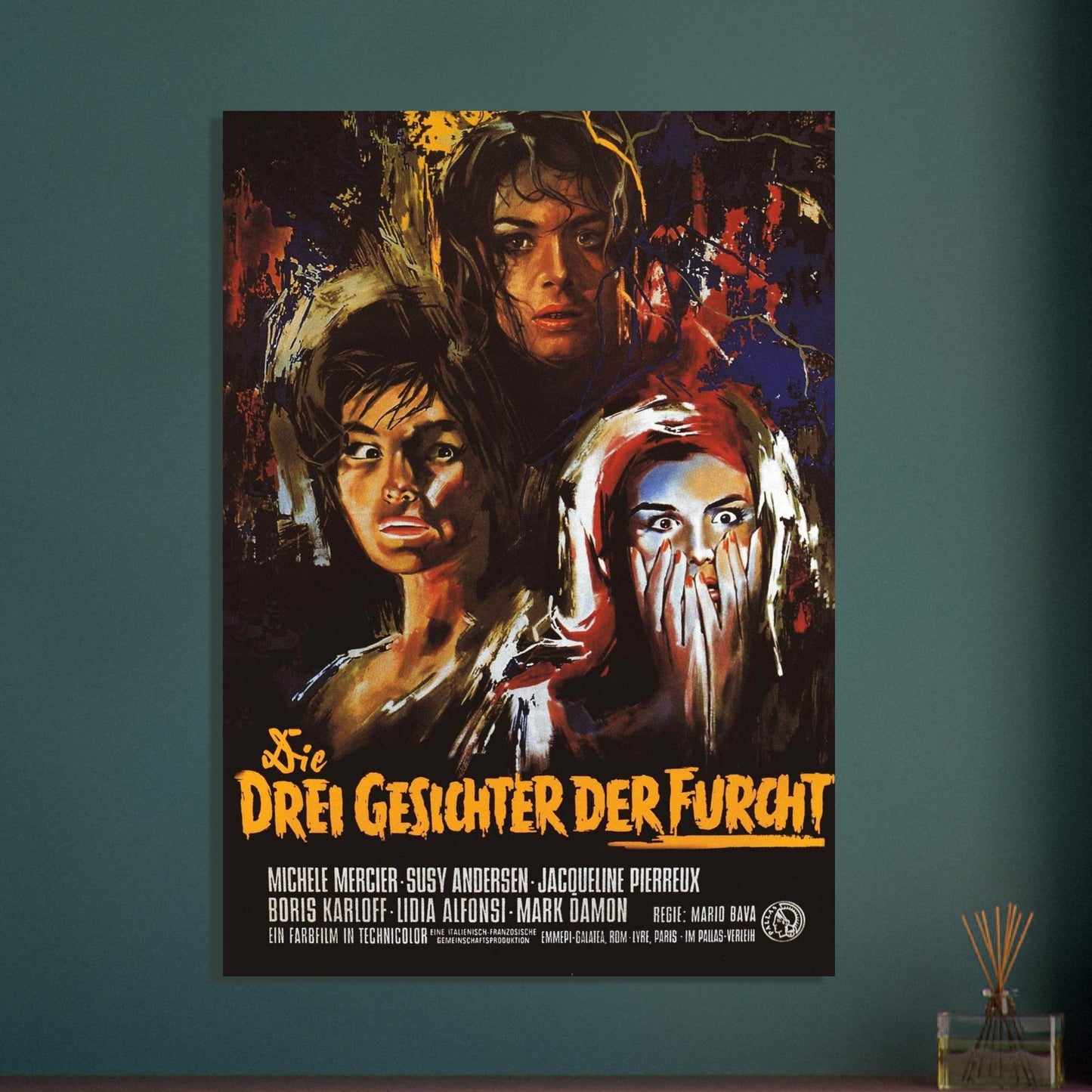 Vintage Horror Movie Poster Framed Canvas - Three Faces of Fear Art