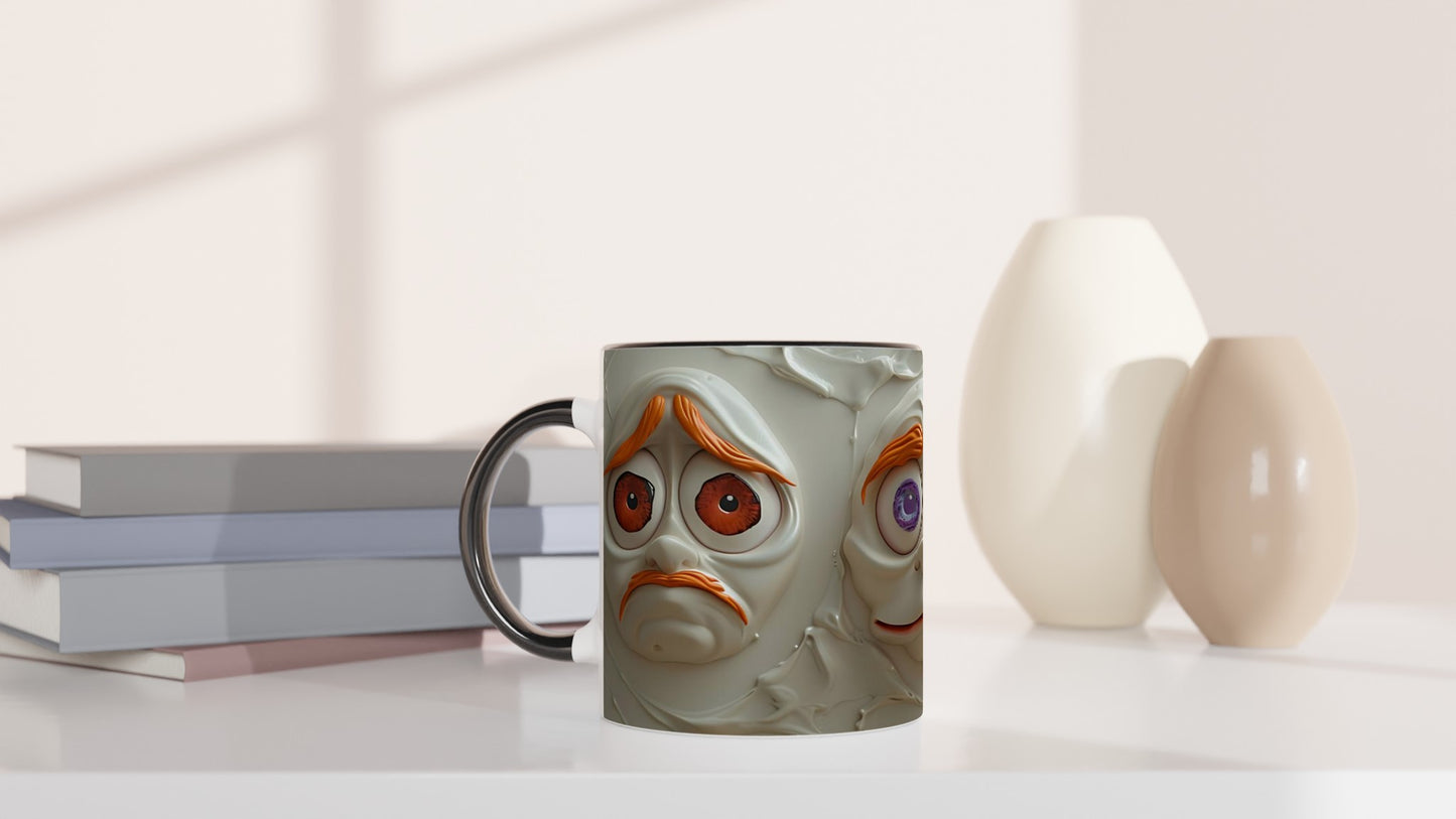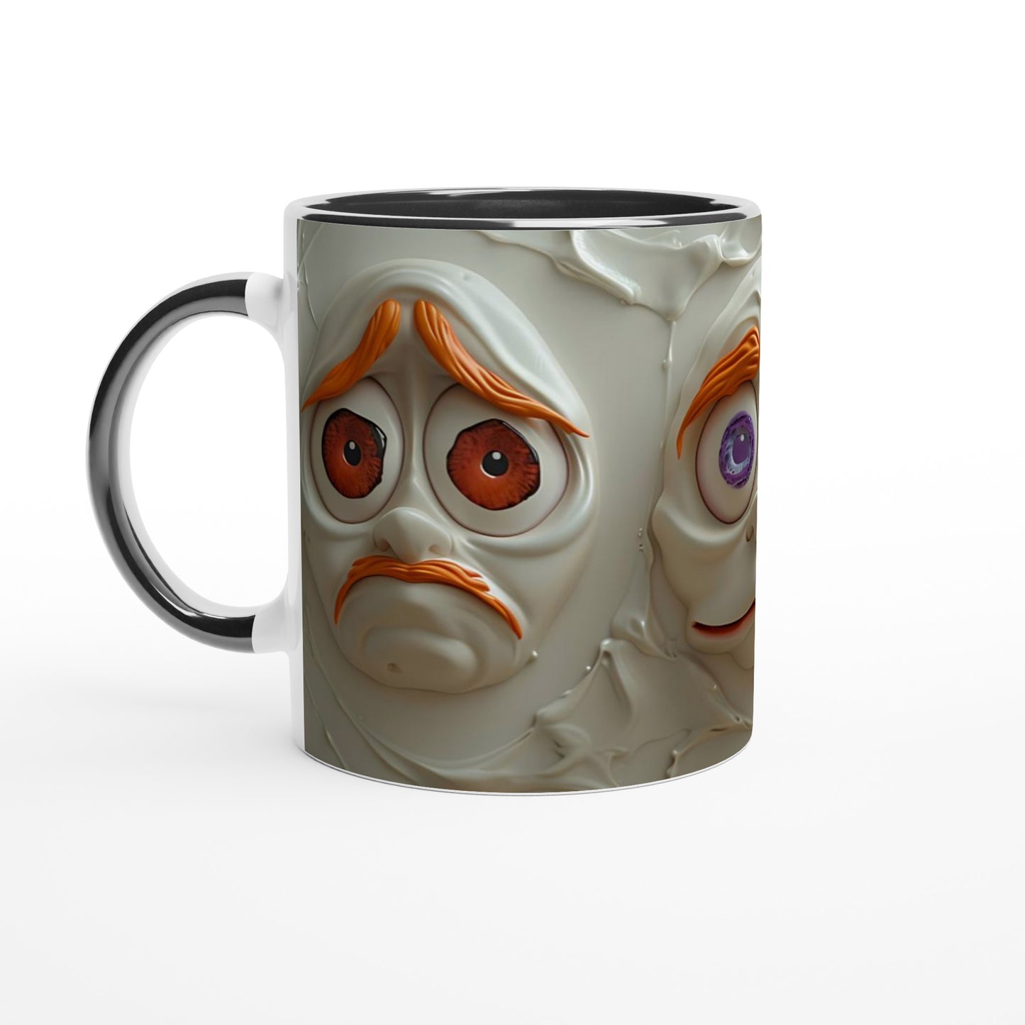 Whimsical Faces Ceramic Mug - Expressive White Mask Design