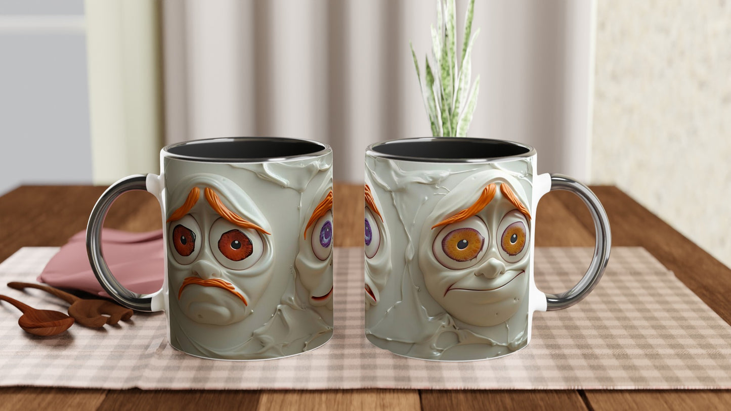 This beautiful ceramic mug is perfect for any event of the day. Your morning coffee, a hot chocolate, or any other hot beverage you enjoy. The mug is glossy white with a colored rim, inside, and handle. The prints come out beautifully and vividly on it. The print retains its quality and luster when used in both microwaves and the dishwasher.