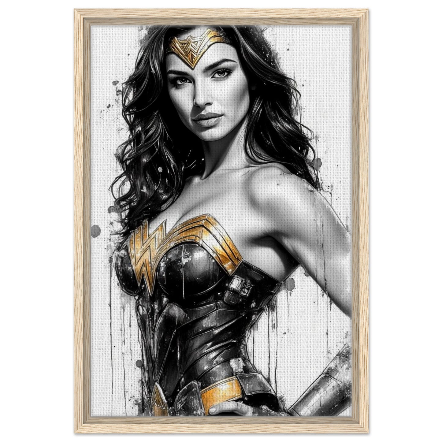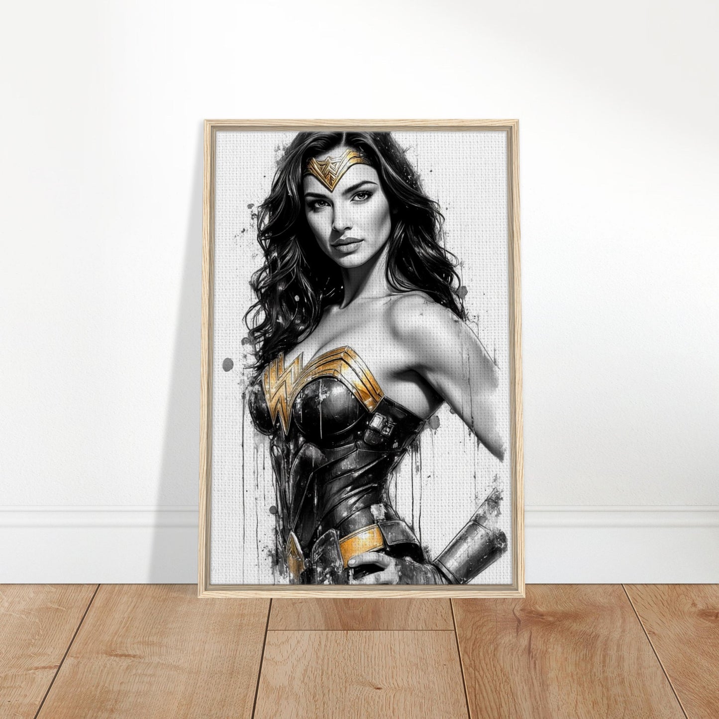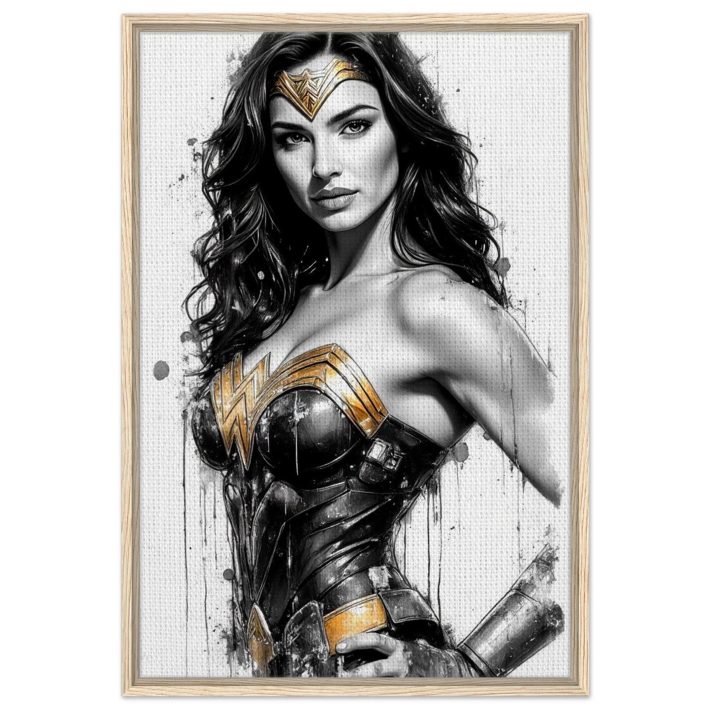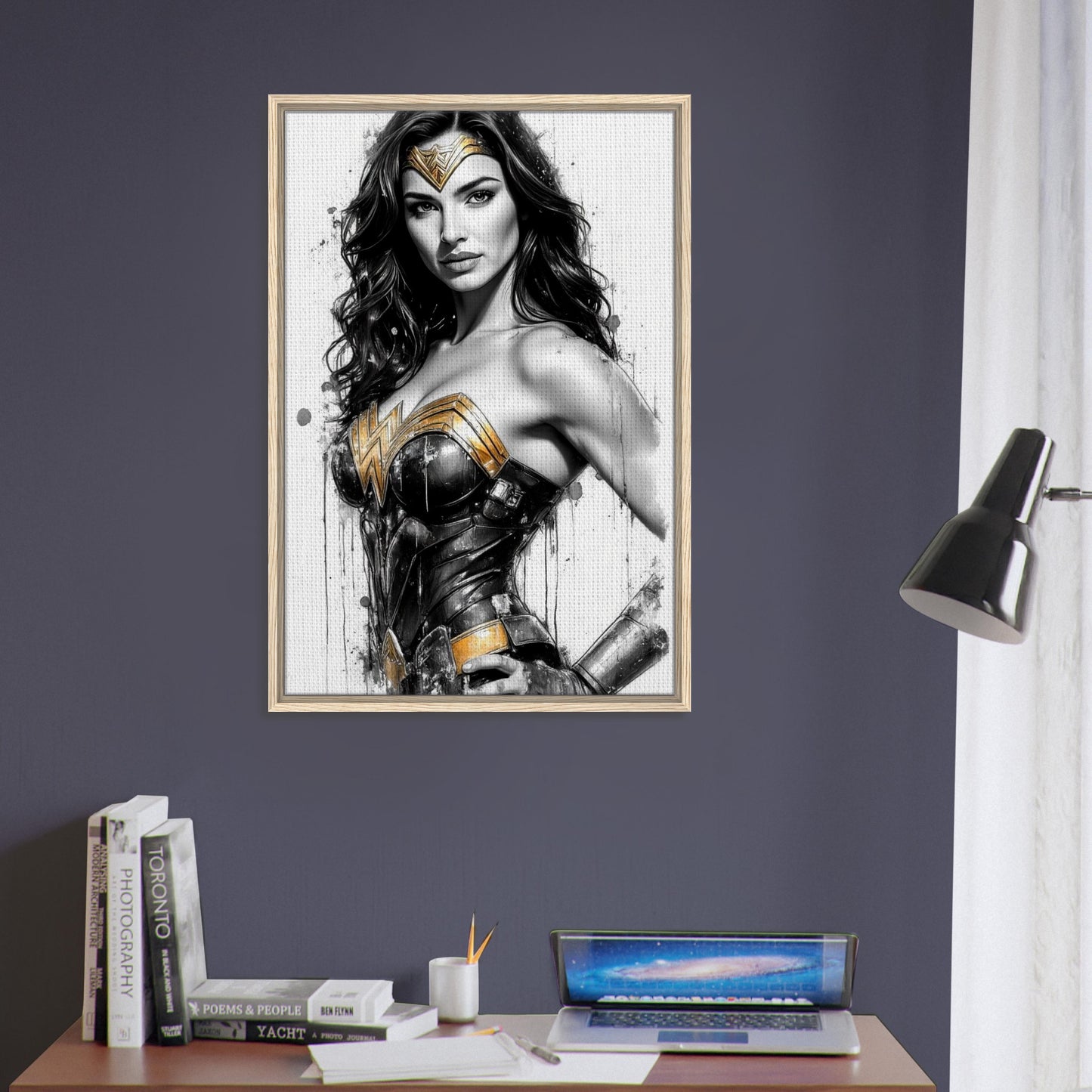 Wonder Woman Black & Gold Watercolor Framed Canvas Wall Art