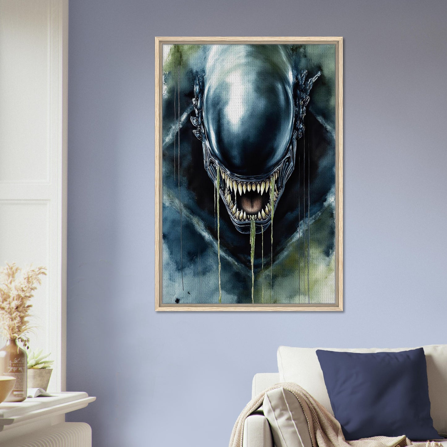 Xenomorph Alien Horror Watercolor Framed Canvas Wall Art