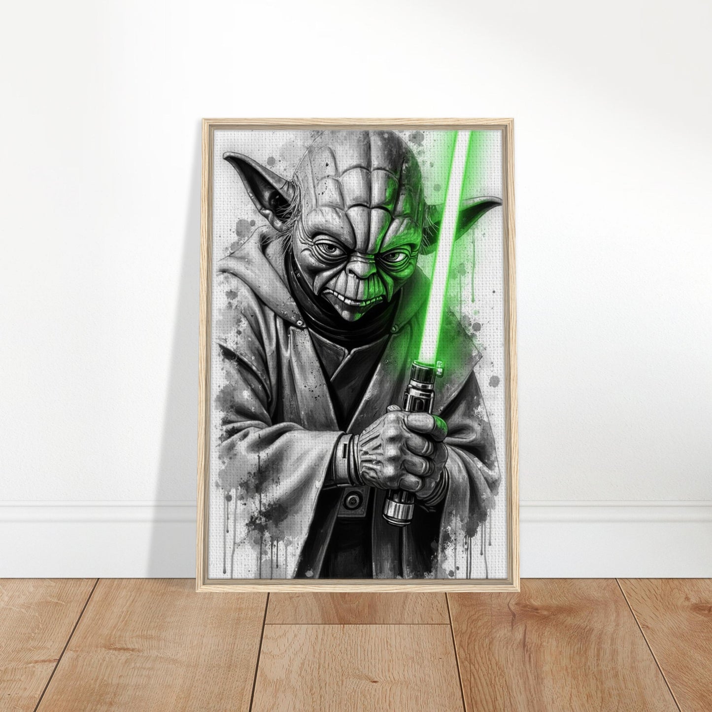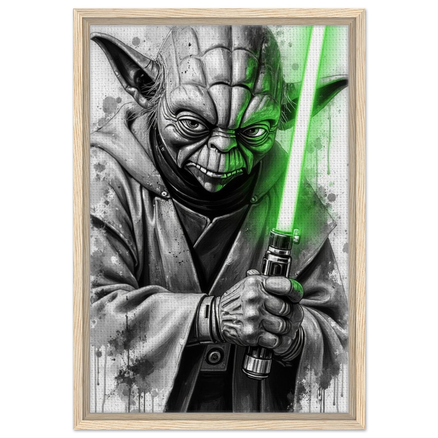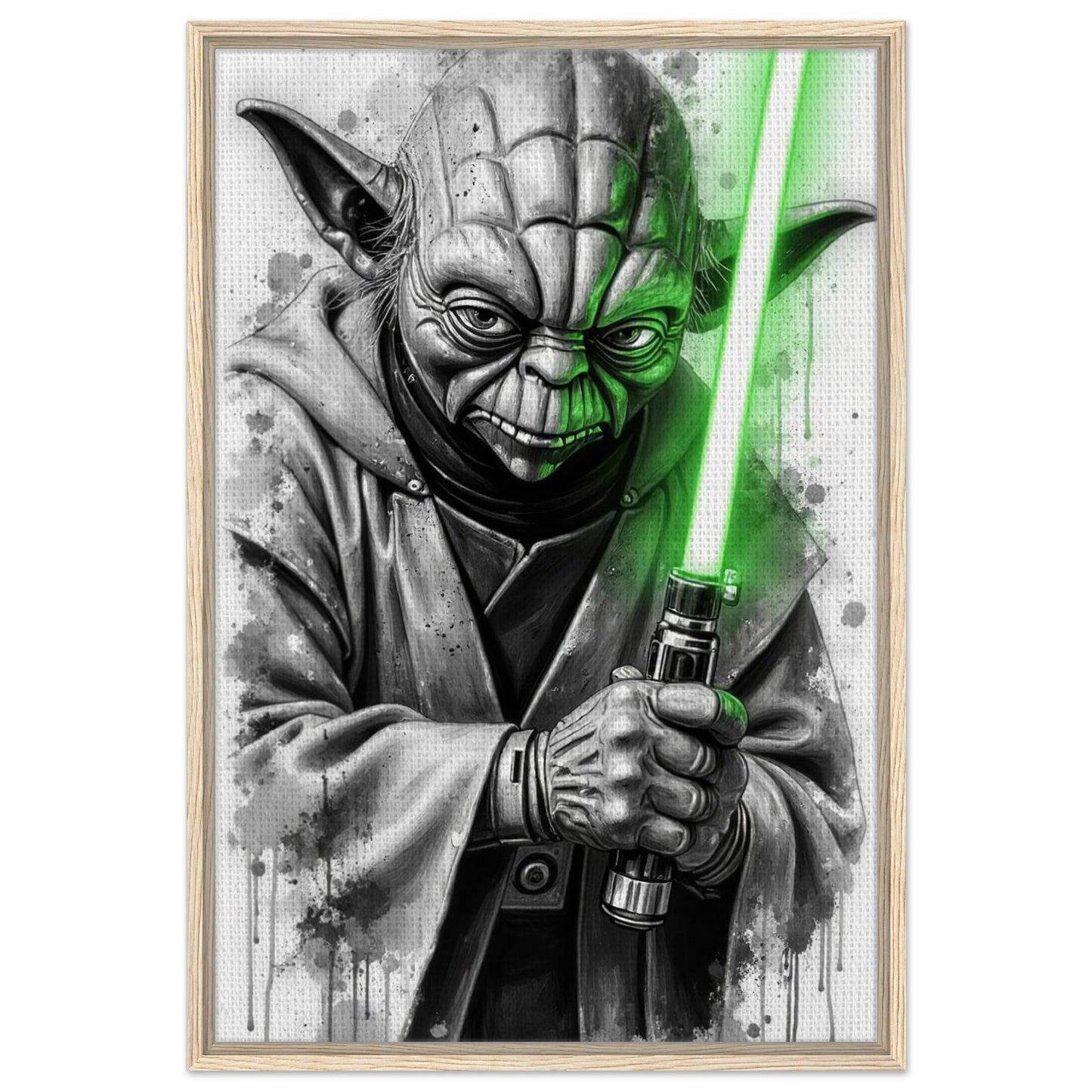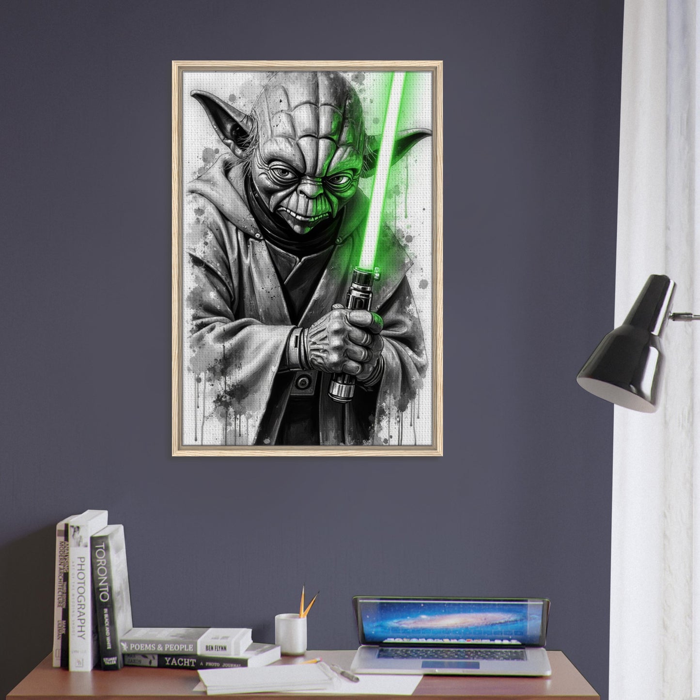 Yoda with Lightsaber Black & Green Framed Canvas Wall Art